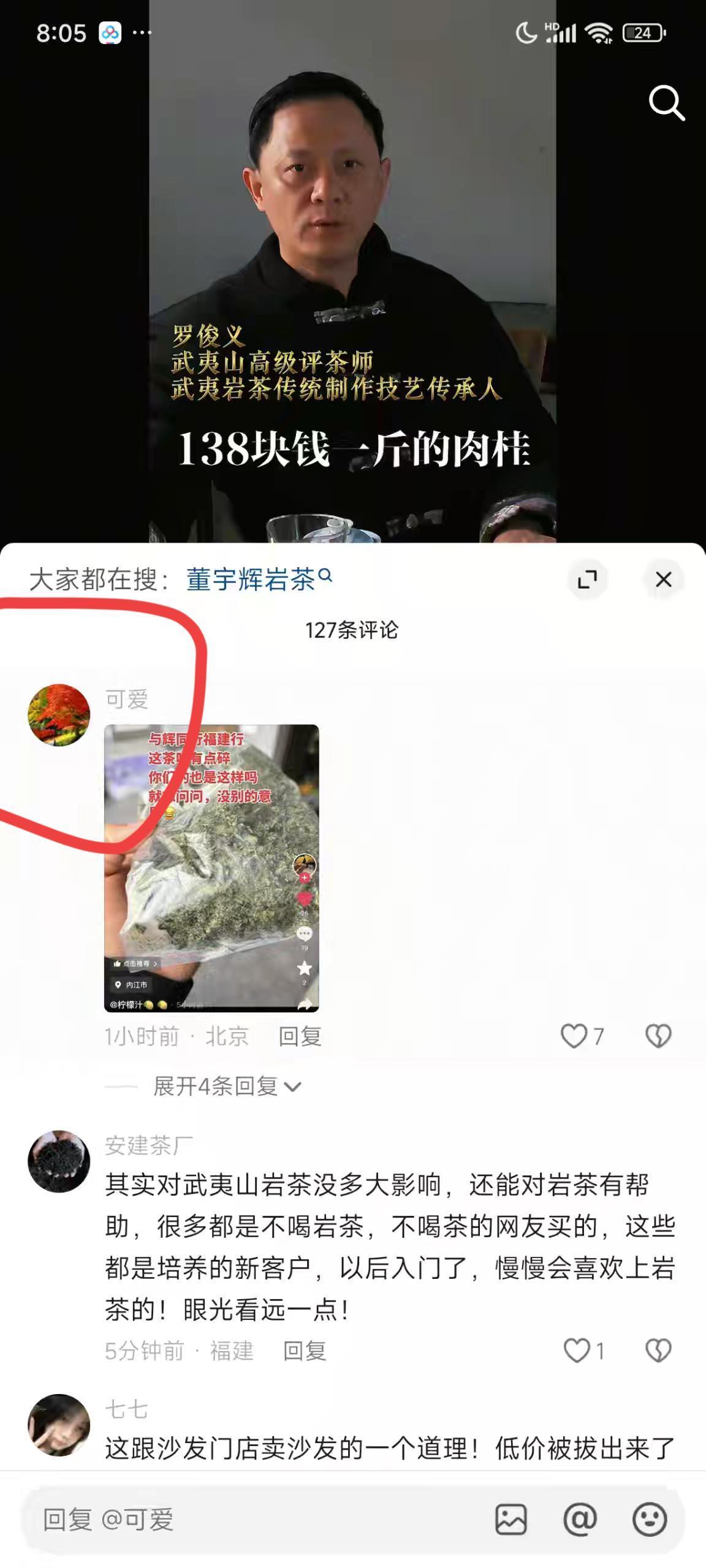 宇辉卖福建茶叶被带节奏的是哪些人? 是一批打着茶农民旗号的“高级”茶商老板。 董宇辉的“口粮茶”打破了他们天价茶叶的壁垒, 撕下了高价茶叶的外衣, 所以一些人为了利益出来讨伐。 而为他们摇旗呐喊助威的又是些什么人? 是某选的铁粉。 老板前天还说和宇辉不是你死我活的关系, 希望各自更好的发展。 这新闻的热搜还在, 但是老板公司的一些粉丝, 就开始带节奏, 对与辉同行各种拉踩。 咱们不造谣不诋毁, 有理有据的看图说话, 看看茶叶贩子视频评论区带节奏的, 那些假冒与辉同行茶叶购买消费者的, 是人李逵还是李鬼? 三五成群的相约去视频下面假扮消费者自问自答, 以此诋毁与辉同行, 还顺带迷惑路人。 你们真的是大聪明啊, 怎么就不换个马甲呢? 这样被扒拉出来, 是不是又一次撕下了你们老板的面具? 老板的人设才立起来, 你们这又给他打下去了, 这样的恶性商业竞争, 是不是太低级? 你们对老板所谓的真爱, 就只是出来冲锋陷阵骂宇辉, 而不是真金白银下单支持? 哦,一直在一直爱, 其实就是一直口嗨。 动嘴的事你们算第一, 花钱支持那是不可能? 老板和公司的口碑有今天的局面, 你们绝对是大功臣。 老板有你们这样的粉丝追随, 想不蹋都难。 散会! 董宇辉