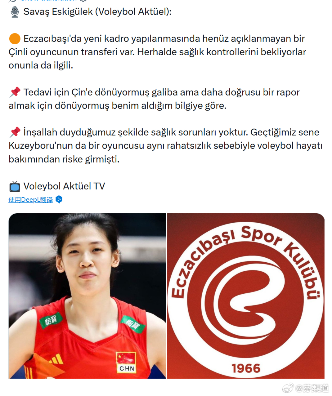 李盈莹国际排坛动态外媒关于李盈莹的最新动态报道 🟠据悉,伊萨奇巴希在新赛季阵容调整中,还有一名中国球员的转会尚未正式公布。俱乐部可能正在等待她的体检结果。📌 据我所了解的消息,她似乎要返回中国——并非为了治疗,而是为了获取一份医疗报告。📌 希望如我们所闻,她并不存在严重的健康问题。去年,库泽博鲁俱乐部的一名球员就曾因同样的健康问题,一度面临职业生涯的风险。