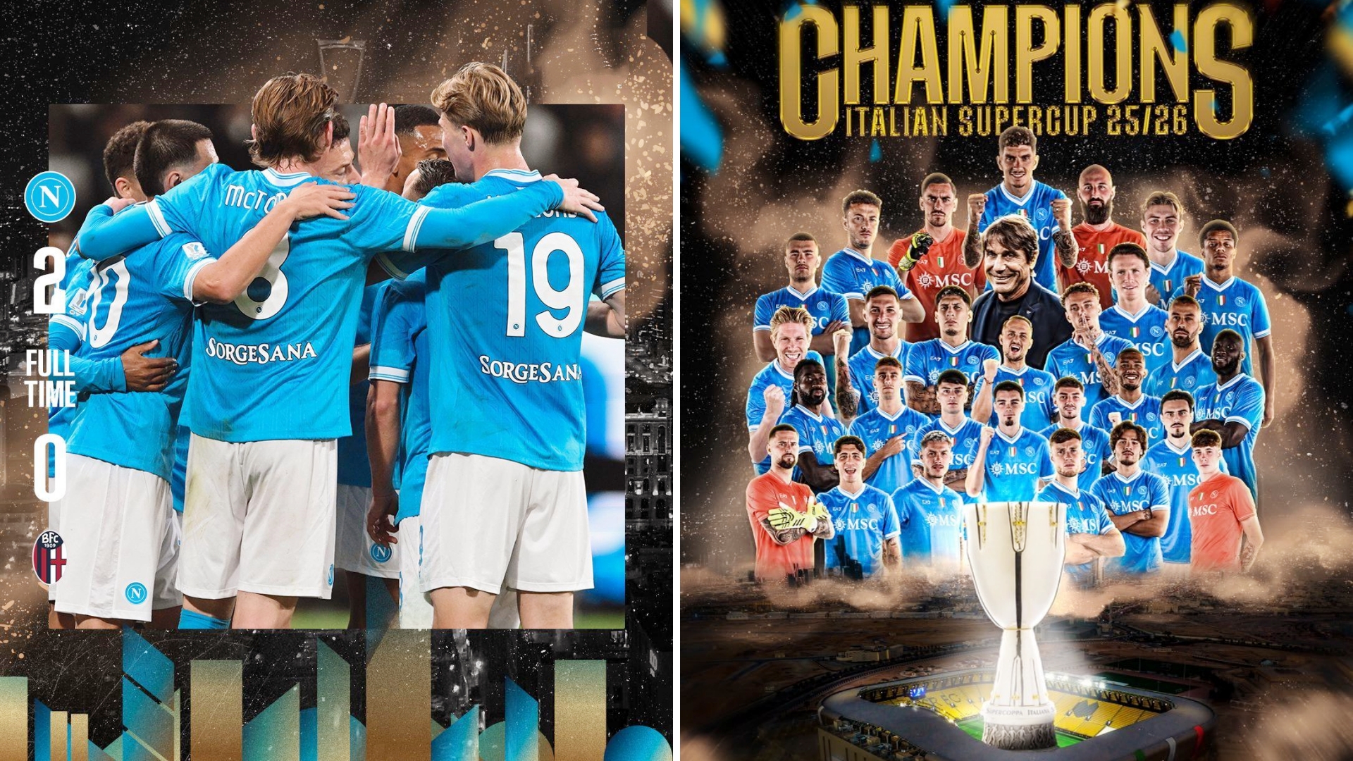 意大利超级杯决赛:那不勒斯2-0博洛尼亚,队史第三次问鼎意超杯冠军。 内雷斯上、