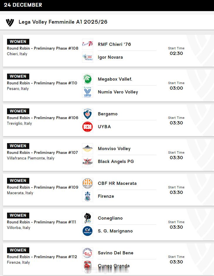 【意甲女排中国德比战今夜上演:朱婷vs庄宇珊】中国排球留洋动态 北京时间12月24日凌晨,意甲女排第16轮将激战。中国球迷最关注的将是朱婷所在的科内利亚诺与庄宇珊加盟的圣乔瓦尼的中国德比战,这场领头羊与副班长的比赛将于北京时间24日3:30在科内利亚诺主场维洛尔巴进行。另外一场焦点战是排名第三的诺瓦拉客场挑战排名第五的基耶里。详细赛程和对阵见图。