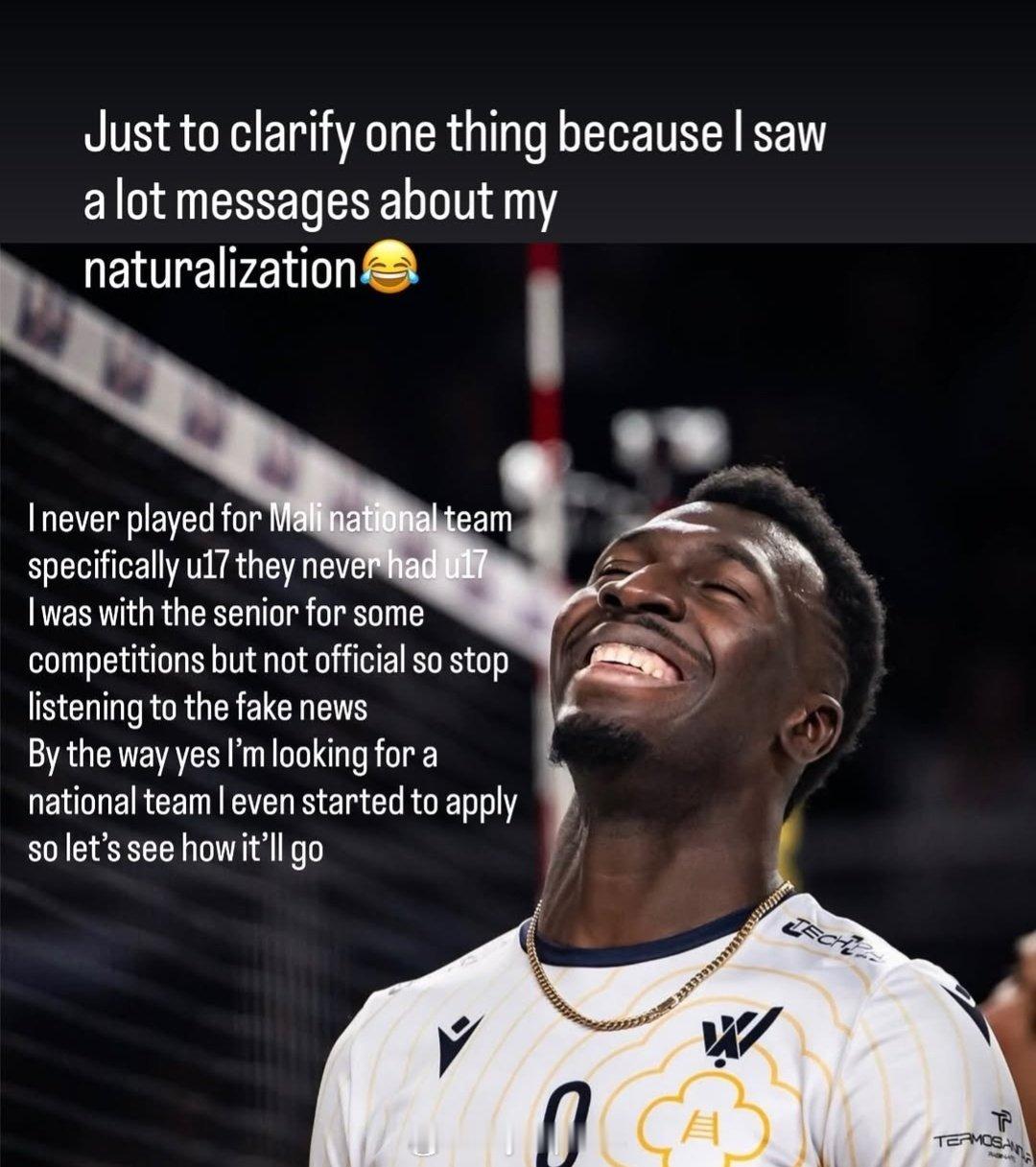 【凯塔否认代表马里打过比赛】国际排坛动态 正急着想赶在国际排联归化新规截止日期(2月28日)前走完流程的马里球员凯塔,否认曾代表马里国家队打过比赛,“尤其是我没代表马里打过U17比赛,马里当时都没有U17国家队。”“我跟国家队参加过一些比赛,但都不是正式比赛,不要听信假消息。”“我已经开始申请国家队了,让我们拭目以待。”此前有消息称马里正积极申请加入意大利男排。