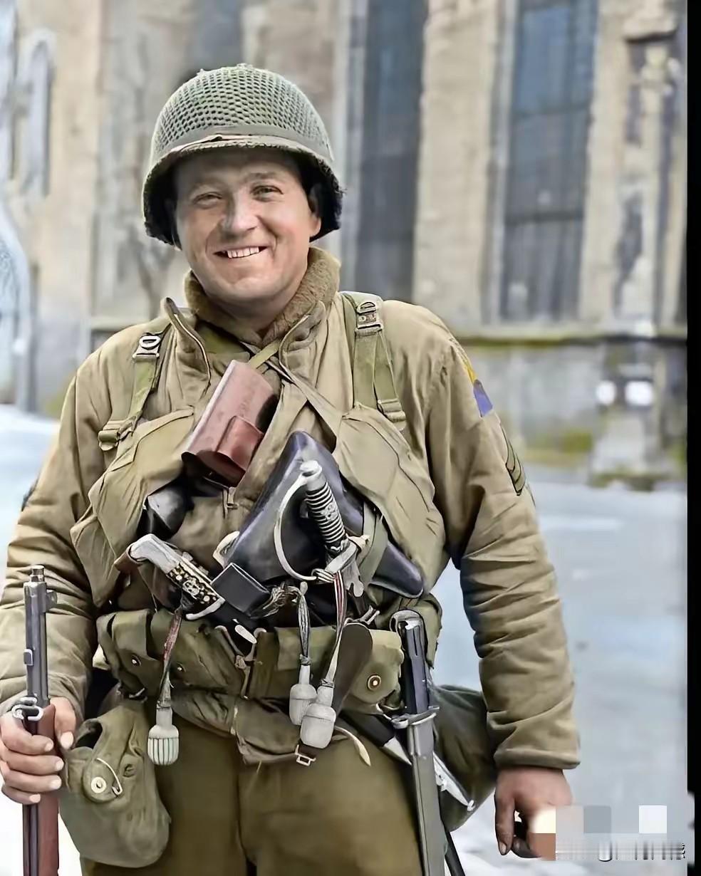 美国大兵笑了,笑得非常的开心,笑的非常的真实,笑得合不拢口,因为他的收获是很丰厚的,身上挂满了各式各样的东西,看来这些东西应该是在战场上缴获的,这些东西如果珍藏到现在的话,估计情况是很值钱的,因为这些东西现在越来越少了!