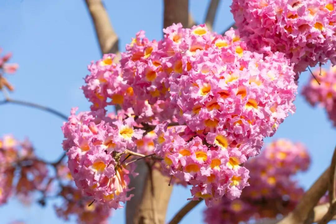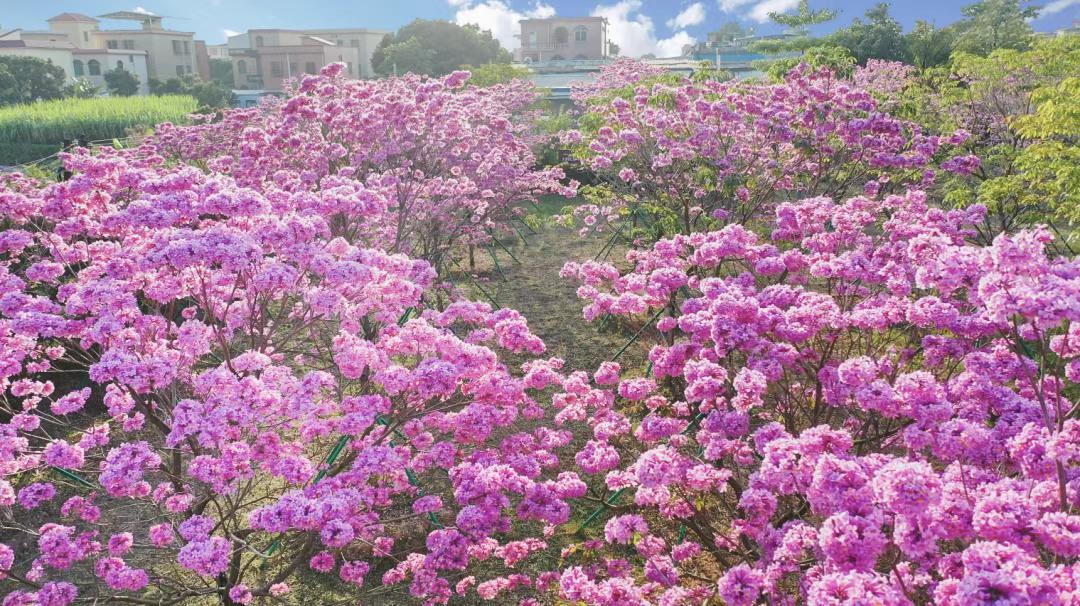 【东涌镇紫花风铃开了】一年一度!东涌镇风铃木又迎来了开放,而且和往年的黄花铃木不同,这次还有最新网红的紫花风铃木。 目前在东涌镇好几个地方都有风铃木花可以欣赏,比如规模比较大的有“俊丰园林南沙1场”,这个位置每年拍照都很出片的。 另外如果不想仅仅是赏花的话,可以来“马克村桥下公园”,这边也有一排紫花风铃木盛放,不过效果就稍微差了一点,但是胜在是可以赏花溜达,更可以从桥上走过去,把高新沙缤纷里一起也玩了。