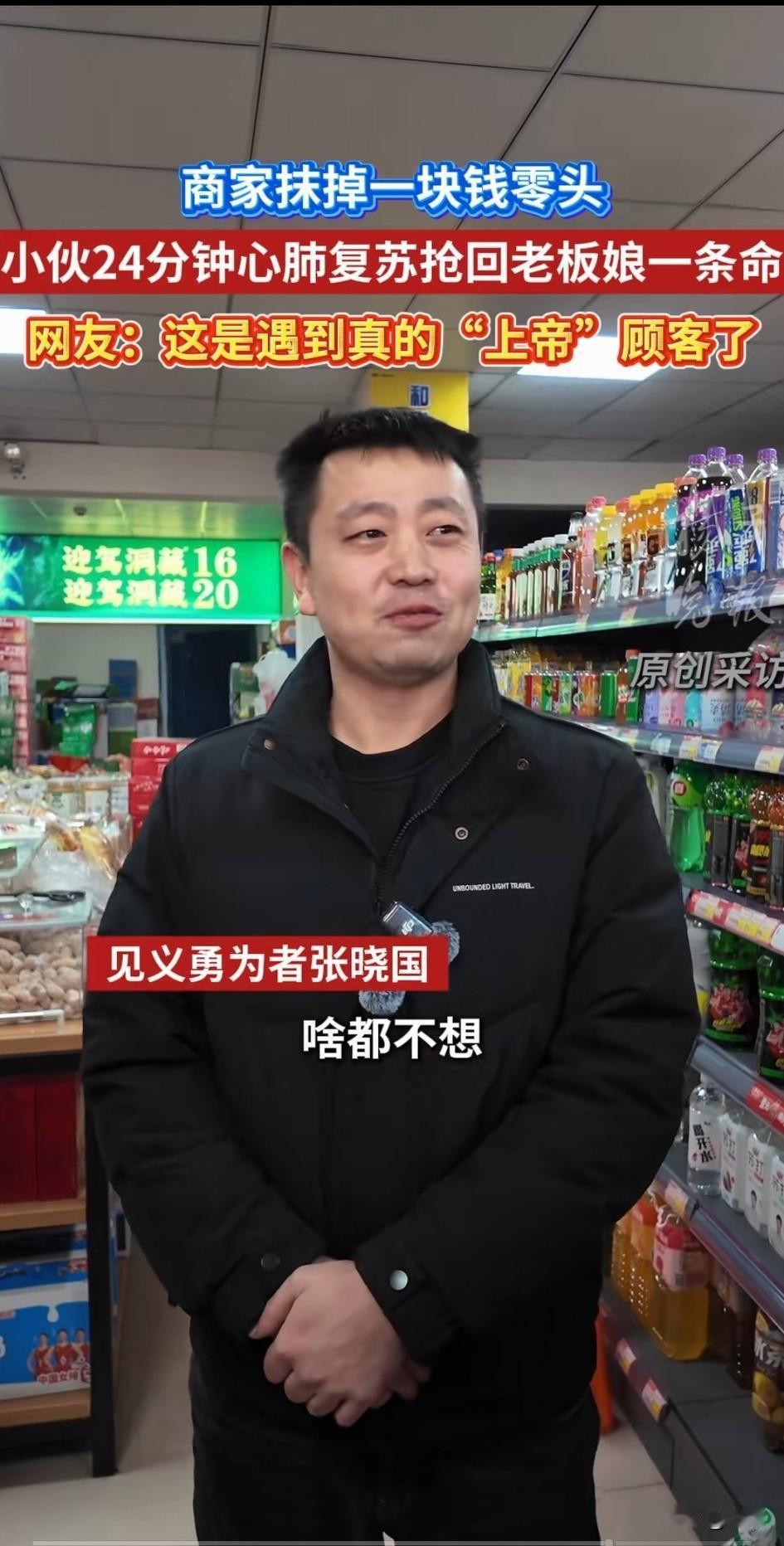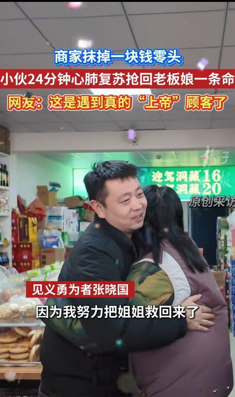 河南小伙真的棒, 他进入吴江一家超市买东西, 准备付钱的时候, 超市老板娘突然倒地, 这可把他吓了一跳, 是他赶紧拨打了120电话, 120在听说对方晕倒之后, 立刻线上指导的进行心肺复苏术, 小伙张晓国毫不犹豫, 立刻进入了收银台, 将老板娘放平, 然后开始了心肺复苏术, 等到医生赶了过来, 超市老板娘已经恢复了心跳, 幸好人没有事, 康复后的老板娘非常感谢小伙子, 于是给小伙子摸掉了一块的零头, 老板娘还和小伙进行了拥抱, 感谢小伙子的救命之恩, 当地叔叔已经确认了小伙的见义勇为行为,还有相关基金会会给予他奖励, 小伙子表示自己是啥都不想, 就想着把人救活就行, 网友表示这是遇到了真上帝顾客! 如何看待男子心肺复苏救女子被质疑“袭胸” 商场救人