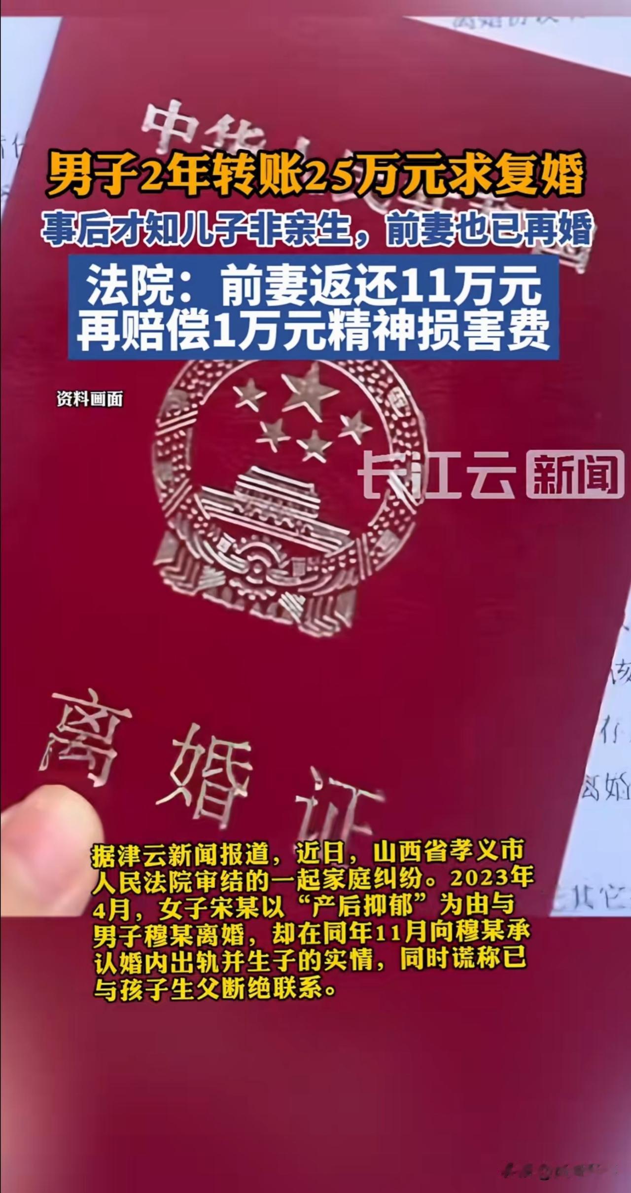 “这也太欺负人了!”山西孝义,儿子出生后,男子被前妻以“产后抑郁”为由离婚,几个月后,前妻又告知男子孩子不是他的。即便如此,男子仍想挽回婚姻,还向前妻陆陆续续转账25万元。不料,两年后,男子得知一个震惊的事实:“早在两年前,前妻和男子离婚后,就已和孩子的生父领证结婚,孩子也改为了生父姓。” 穆先生和女子宋某原系夫妻关系,2023年4月,两人迎来了他们的第一个孩子,在孩子出生后,穆先生别提有多高兴,憧憬着他们未来。 然而,突然有一天,宋某以自己“产后抑郁”为由,非要和穆先生离婚。 穆先生不愿,宋某就闹。因担心妻子的身体,无奈之下,穆先生只好如宋某所愿就签了字。 离婚后的穆先生,仍对宋某和孩子挂念,时不时会前往探望。 可命运似乎对穆先生并不友好。7个月后的一天,宋某对穆先生坦白,她在婚内曾出轨过别的男人,孩子根本不是穆先生亲生的。 穆先生听后如遭雷击。但她又看见宋某称已和孩子的生父断绝往来,心中的郁闷和愤怒有了转圜,仍对宋某抱有一丝期望。 他想着,只要宋某能好好过日子,过去的事可以既往不咎。 从那以后,穆先生便一门心思扑在“复婚”上。 看着宋某带孩子不容易,穆先生二话不说就转账,今天几千、明天几万,就想让前妻和孩子过得好点,等着她有天能回心转意。 就这么抱着期望两年时间里,穆先生累计给宋某转了25万多,几乎掏光了自己的积蓄。 然而,到了2025年7月,一个偶然机会,穆先生发现孩子的姓氏变了! 深究之下,穆先生才得知早在2023年11月,宋某就已经跟孩子生父登记结婚了! 到了这个地步,穆先生仍心存幻想,赶紧去做了亲子鉴定,结果白纸黑字显示:孩子跟他没有半点血缘关系。 穆先生彻底绝望,多年的付出,不仅自己被耍的团团转,更是人财两空。 有人说:“穆先生太傻了,他没在得知真相的第一时间止损,反而越陷越深,才酿成了今天的局面。” 也有网友怀疑,穆先生是被做局了,可能从一开始,宋某就伙同孩子的生父,故意吊着穆先生,目的就是为了“钱”。 对于穆先生的遭遇,我们当然感到同情,但当务之急,是如何能追回钱款,让损失降到最低。 穆先生事后也索性直接把宋某告上了法院。 法院经审理后认为: 1、宋某构成不当得利,她隐瞒自己和孩子生父结婚的事实,给穆先生希望,穆先生在对事实认知错误的情况下,一直向宋某付出转账。 宋某没有正当理由去得到这笔钱,依法要予以返还。 2、宋某婚内出轨生下别人的孩子,违背夫妻之间忠诚义务,也给穆先生带来巨大的精神痛苦。 穆先生可向宋某索要精神损害赔偿。 综上,法院最终判决由宋某向穆先生返还110000元,并支付10000元的精神损害赔偿。 说实话,这件事的确让人悲愤,悲的是,像穆先生如此痴情且大度的人,竟落得个背叛的下场。 而气愤则更在于宋某的毫无底线:出轨生下他人的孩子不算完,离婚后还继续让穆先生当冤大头。 希望大家能够以本案为鉴,婚前多加了解对方的人品,婚后更要守住忠诚的底线。 对此,你怎么看呢?欢迎大家在评论区留言。来源:长江云新闻