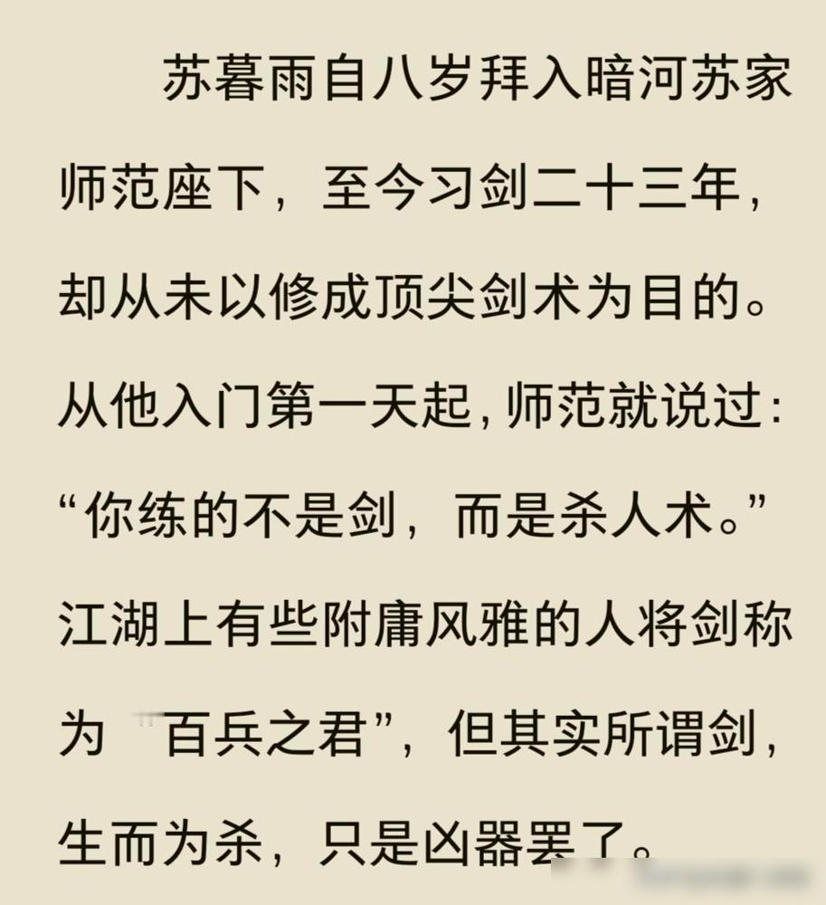重刷《少年歌行》小说,可算是找到了苏暮雨的准确年龄,31岁,那么再推算回去,8年前也就是《暗河传》大结局的时间线上,苏暮雨的年龄应该是23岁,那再推回去,他出任傀的时候,应该不到20岁。 以前总觉得这些顶尖杀手肯定是江湖老炮儿,但最近仔细扒了扒时间线才回过神,原来这几位成名的时候简直小得惊人。 不到二十岁就当上了“傀”,这个职位的含金量放在整个暗河都是相当炸裂的。 感觉那时候的他可能还是个在现代该读大学的年纪,结果已经在那种地狱级别的环境里杀出重围了,确实配得上少年系列的主题。 我最在意的是,苏暮雨在《少歌》里给人的感觉一直很沉稳、甚至有点老练,结果一看年纪才三十出头。 这大概就是江湖催人老吧,哪怕只有三十岁,眼神里的故事感也已经拉满了。 再想想苏昌河,他在《少白》里一出场就留着那两撇标志性的小胡子。 结合现在的年龄推算来看,他那时候纯属是在装大人啊,估计是故意把自己弄得老气横秋好去镇场子。 可能这就是暗河子弟的日常,要么是在生死边缘游走,要么是在努力伪装成熟,这种早熟的少年感反而更让人唏嘘。