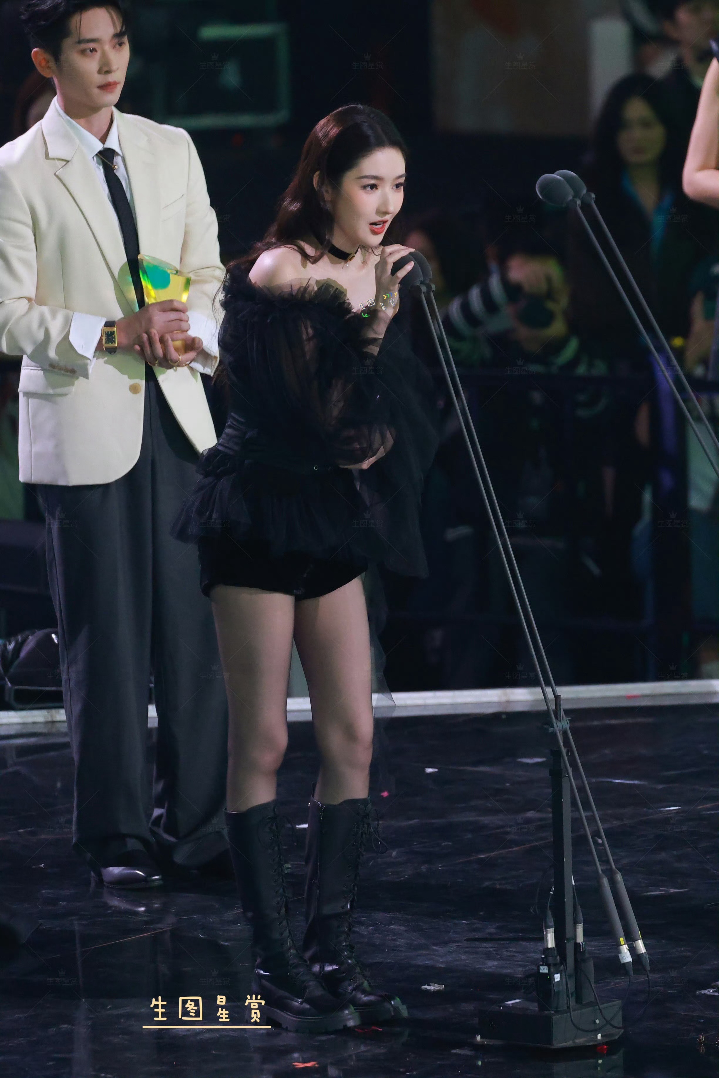 王玉雯🖤星光大赏内场黑丝皮靴生图