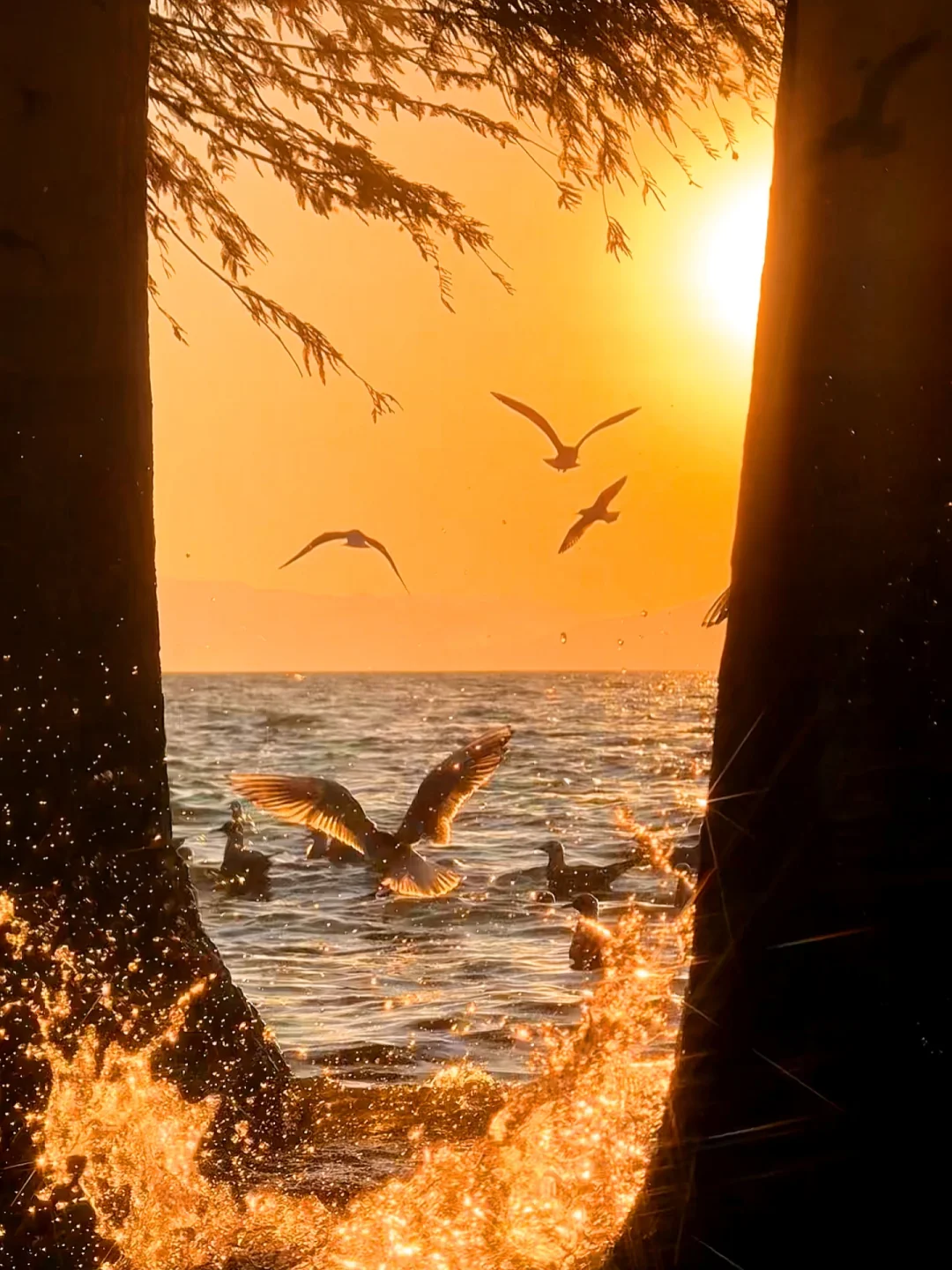 🔵捞鱼河湿地公园:冬季红杉林绝美,夕阳下海鸥成群飞翔,画面美的得像电影