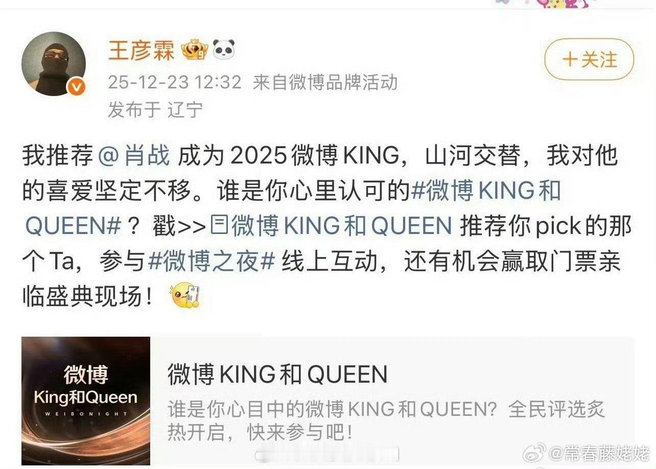 王彦霖投票肖战King哈哈哈,我看了好几遍,东北银王彦霖老师你也太可爱,期待小城