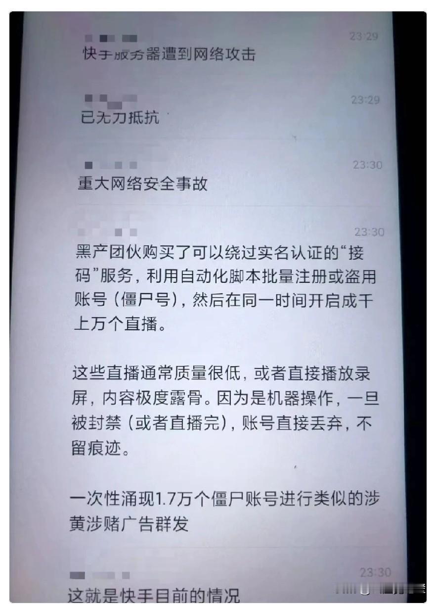 疑似ks内部爆料, 安全角度深度复盘: 不是审核失误,是一次赤裸裸的攻击 我们来看看主要的问题,为什么会出现同一时间段内,数十万条视频审核失败的现象? 可能的原因有以下几种: 1.故意欺骗AI审核。攻击者通过特殊处理视频,让机器无法识别视频内容,从而达到审核失败的目的。这种情况在之前就有报道,是一种比较低级的网络攻击手段。 2.直接对快手后台API动手,强行绕过正常审核流程,提交恶意视频。 3.瞬时流量太大,压垮了审核系统,导致审核系统无法正常工作。 这种情况在大型网站上也时有发生,尤其是突发热门事件时,大量用户涌入网站,网站服务器不堪重负,就会出现各种各样的问题。 按照常理,一般网络攻击都是选择在流量较低的时间段进行,而这次攻击选择在年底这个流量高峰期, 并且也选择在人力审核疲劳期(连续几天没有热点,大概只有晚上8点钟左右才有一点人气,突发事件时突然涌入大量用户),很明显, 这不是为了干掉快手一个平台,而是为了制造混乱,为了引流,为了让更多的人看到他们的其他内容。 说几句题外话,快手不止是一个平台,平台背后还有很多普通主播,普通商家,他们依赖这个平台赚取生计。 网络安全问题不是只有网站和企业负责,每个人都应该保持警惕,当我们正常使用平台时,就应该维护这个平台,不能随意发虚假信息,更不能传播不实信息。 希望快手这次能给我们一个明确的处理结果!