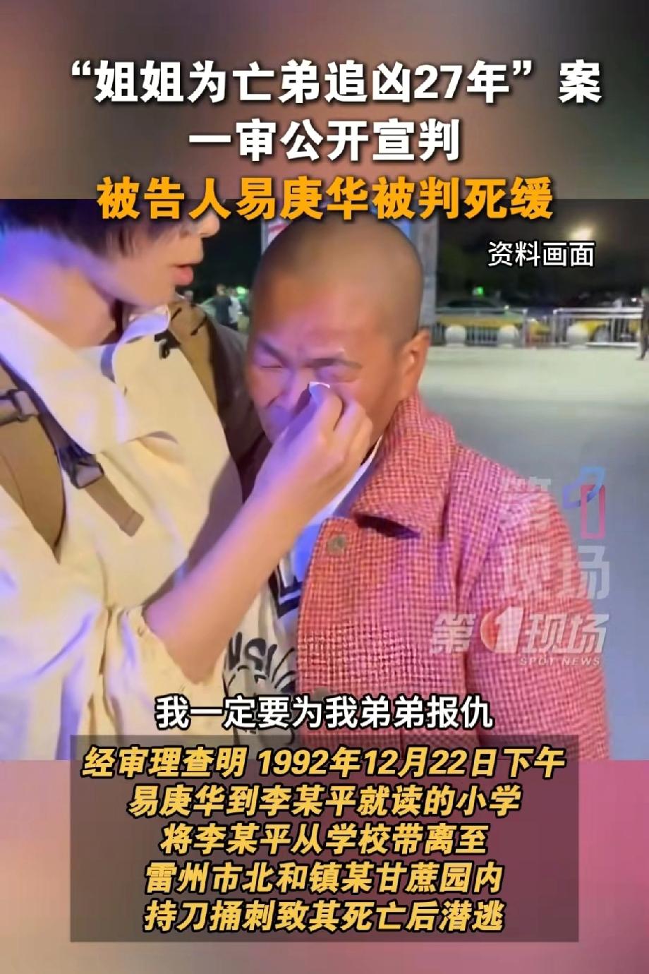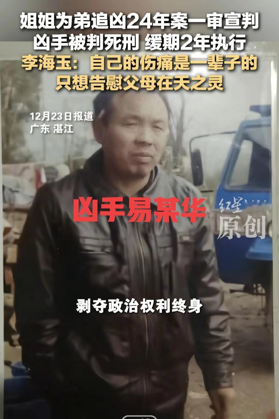 姐姐李海玉为了找失踪的弟弟,追凶27年,等凶手易某华被抓捕的那一刻,她才知道弟弟早就遇害了! 92年,广东省湛江市,一名21岁的年轻人,叫易某华,正好没有工作,父亲这边也缺人手,又因为是老乡,李海玉父亲就让他帮着照看橘园,因为其中有三天没上班,父亲就扣了不到40元钱。就是因为这点钱,从此对父亲有了仇恨,放话说:“我要让李家断子绝孙!” 后来,易某华真的找到了李家家里唯一的男孩,到寄宿的学校,通过以孩子妈妈生病了为由,把弟弟骗出去并残忍地杀害,才8岁! 一开始,李家以为是易某华把弟弟拐卖了。后来过了一段时间,在一块甘蔗林中发现了一具神似弟弟的尸体,经过父亲对衣物和身体特征的辨认,认出了那就是弟弟! 父亲怕家人都承受不了,都瞒着弟弟已经被害的事实,一直都以为弟弟只是被拐卖了,就算是最后临死之前也没有说出来。 姐姐李海玉看到父亲的遗言,为了弟弟,为了父亲那个咽不下的一口气,这一追凶就是27年,期间一直都是奔着先找到凶手,然后问出弟弟被拐卖到哪儿去了。 谁知道,这27年追凶精心策划,苦苦等来的,又是一个惊天雷劈,原来弟弟丢失的那一天,就已经遇害了,只是父亲不忍心说出来。 这27年,追的哪是凶手啊,是父亲到死都咽不下的一口气,是弟弟没等到的那个公道。现在,姐姐替他们都讨回来了。人没有白找,苦也没白受,天可总算亮了。
