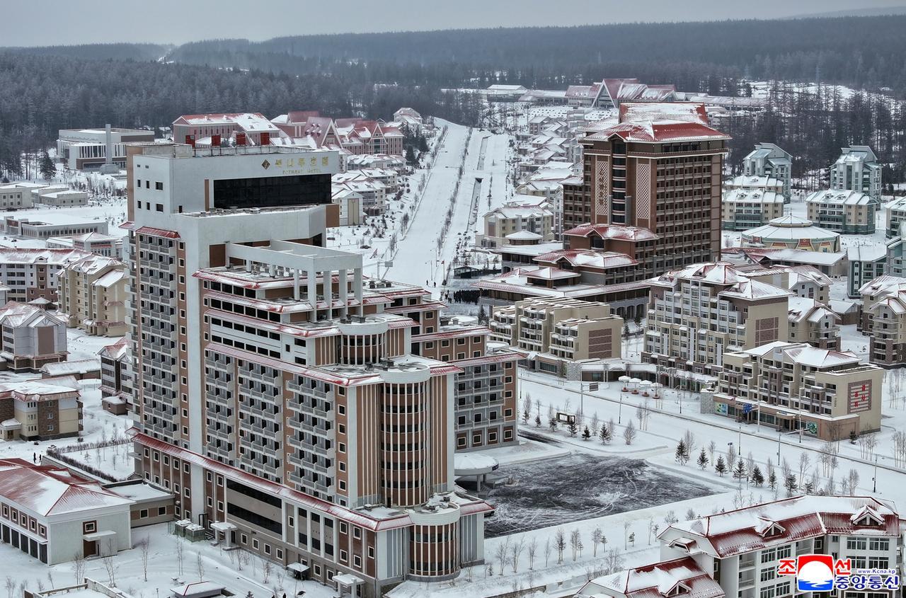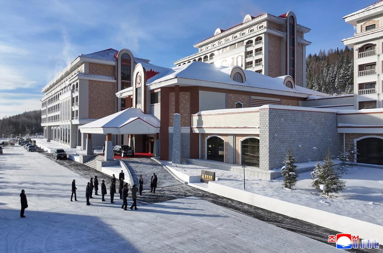 当地时间12月20日,在朝鲜两江道三池渊旅游区,金正恩同志出席了伊加尔酒店与米尔英浩酒店的竣工仪式。
