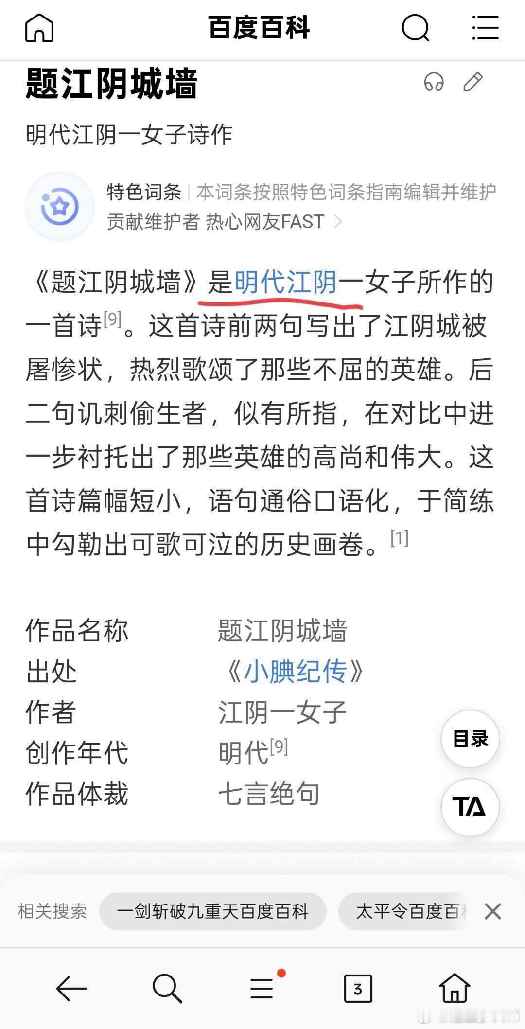 明末纪念江阴八十一日的《题江阴城墙》被百度语文悄悄的从明朝改成了宋朝。我很好奇这个改了有什么意义?是不是怕别人想起江阴之战本身的激烈以及战后的惨烈?就这样暗搓搓的搞事,还劝别人大度,是不是某种行为艺术呢?