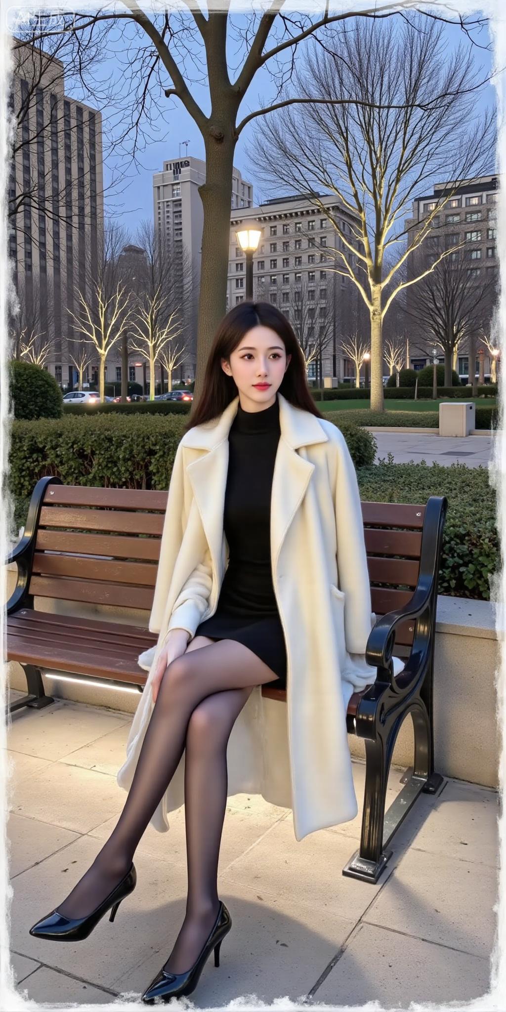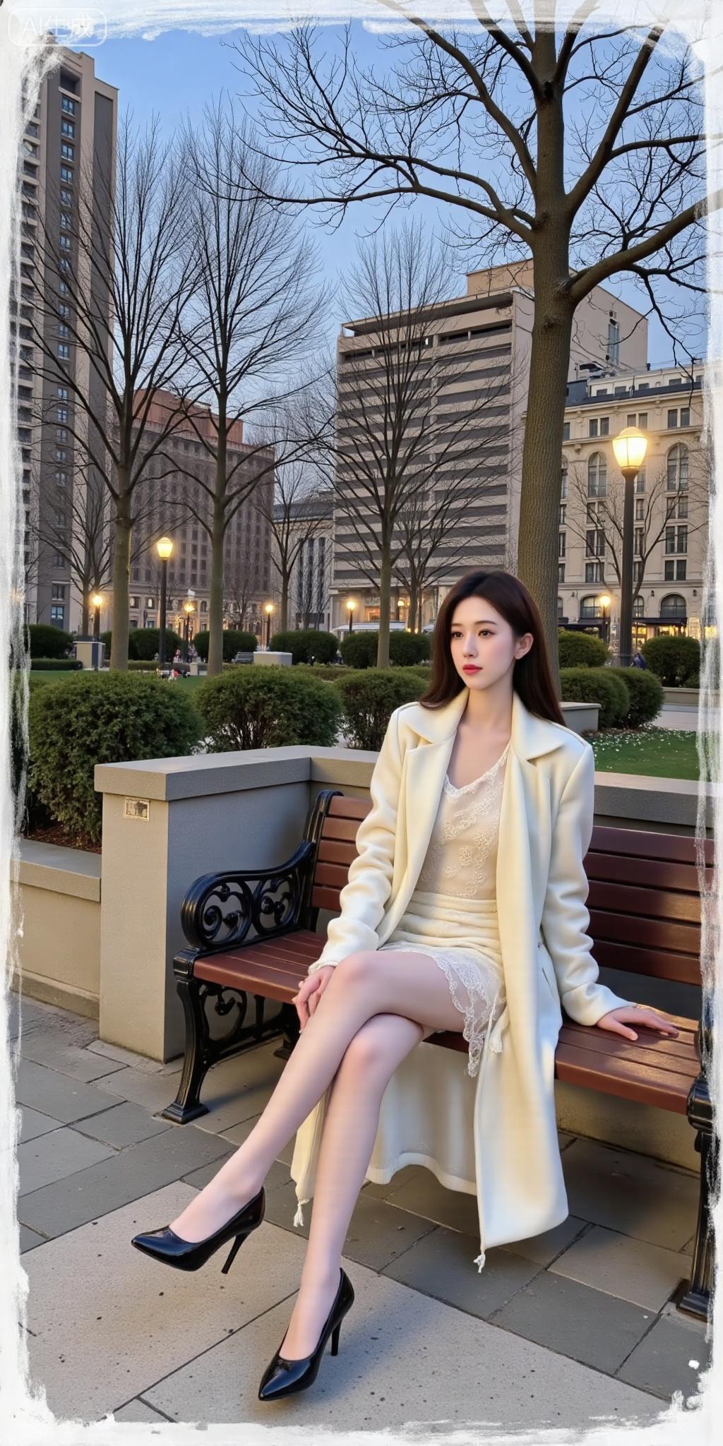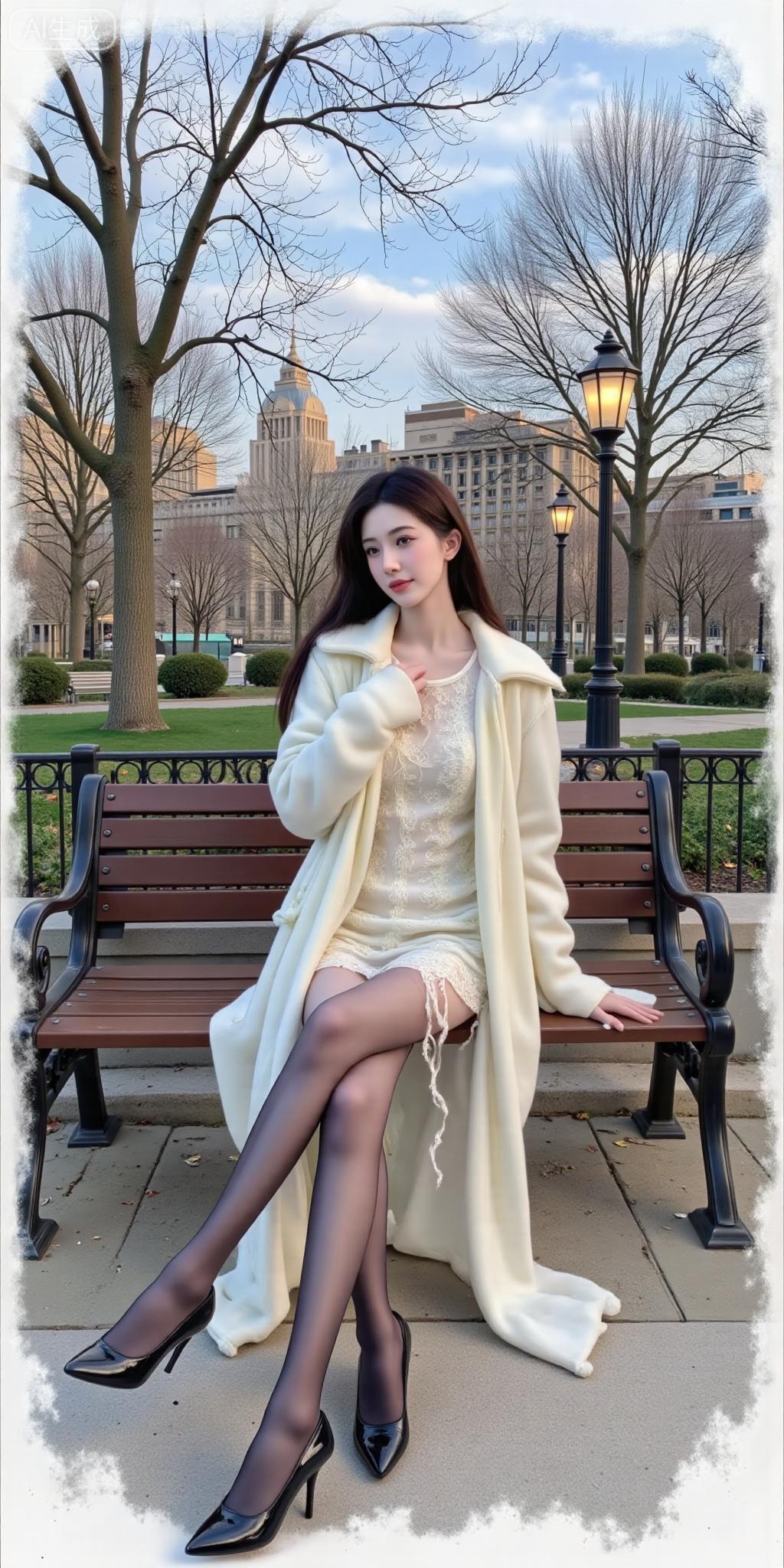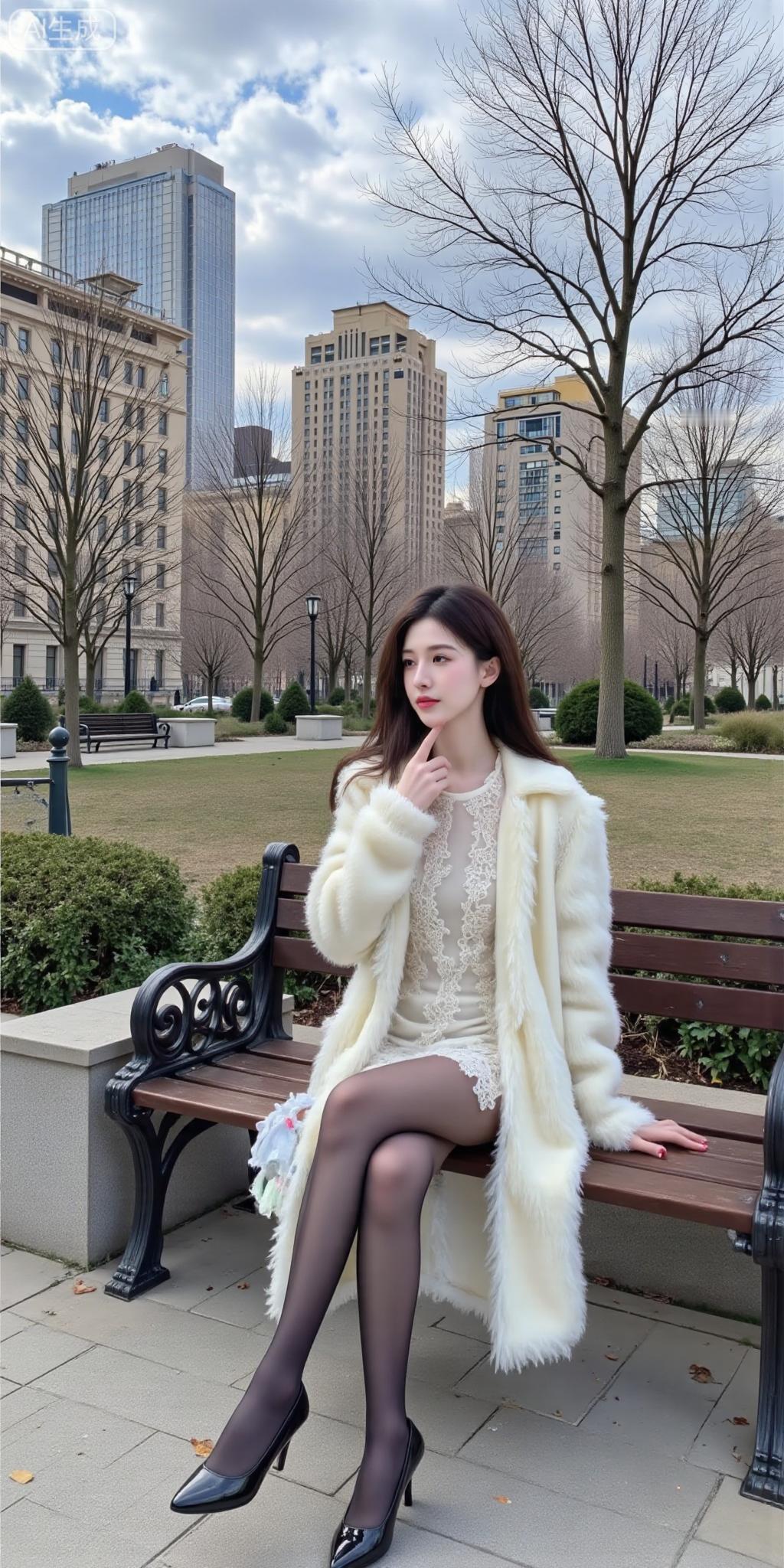 奶白毛绒大衣裹蕾丝裙,柔糯质感衬优雅,配黑丝高跟鞋添轻熟感。城市公园长椅上,贵气又温柔,通勤约会皆可穿✨御姐风大衣