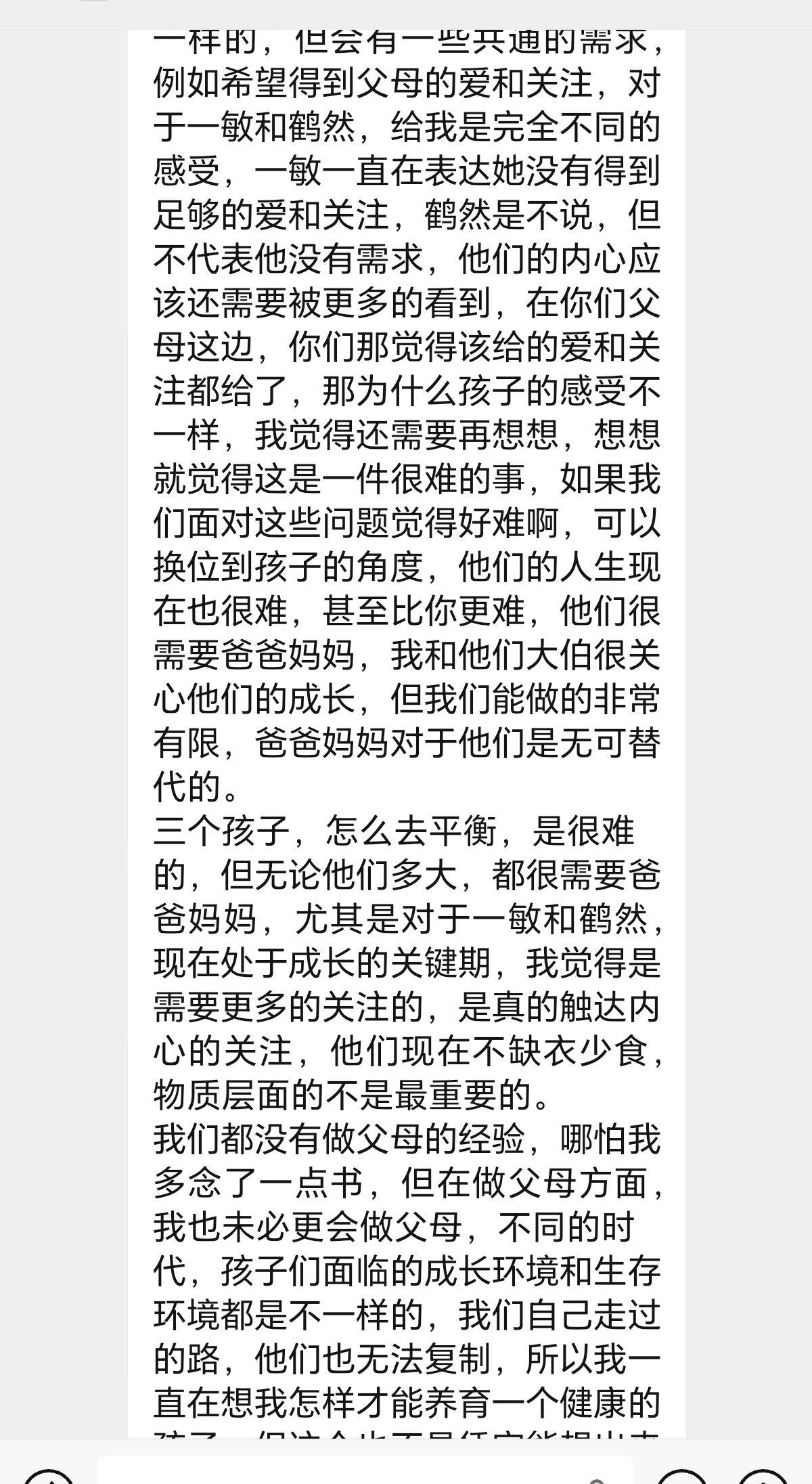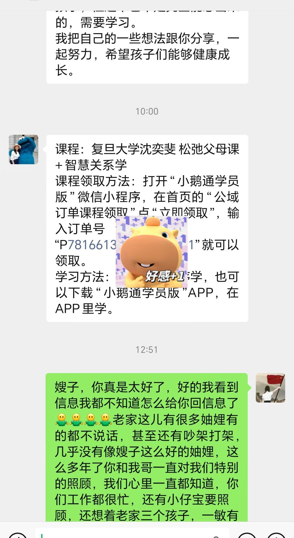 是嫂子和弟媳,是妯娌,是别人眼中最难相处的关系,可我却很骄傲的说很幸运我有一个好嫂子,孩子们有一个好大娘。家里两个孩子今年都上高中了,也到了青春期,各种问题接踵而来,也不知道应该孩子怎么去交流,说的多了孩子觉得唠叨,不说吧却又忍不住。大妞儿最近一段时间身体总说不舒服,去医院做检查也都没事,嫂子哥哥也打电话聊了孩子的事,嫂子还给报了课让我们学习,说实话真的很感动,这些明明都不是他们的事,他们每天上班都很忙很辛苦,家里还有一个两岁的小仔宝需要照顾,却还想着老家的我们,我一直都觉得我很幸运遇到这么好的哥哥嫂子,孩