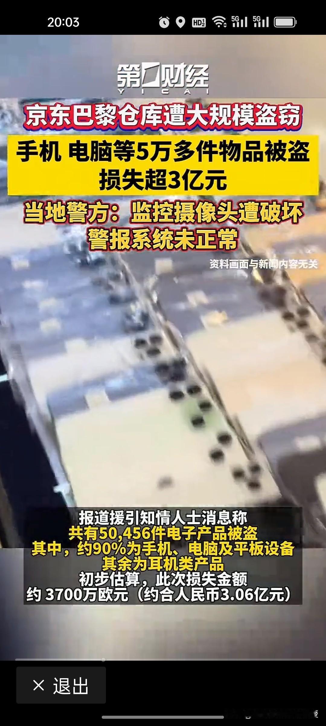真是骇人听闻!昨天,京东3亿货值在法国仓库遭洗劫!京东法国仓失窃货物能追回吗? 当下正值圣诞旺季,京东法国海外仓3亿物资遭专业团伙洗劫,被盗的90%都是手机,平板,电脑等贵重物品,团伙作案的盗贼切断监控、破解安保,疑似内外勾结。法国跨境仓盗窃案破案率不足20%,赃物多拆解流入黑市,追回希望渺茫。 说到底,这次是海外安防踩了坑,没吃透当地治安漏洞,应急响应也慢半拍。要止损防下次,就得升级本地化安防、联动当地警方建联防机制、买足盗抢险对冲风险。 法国的治安一直是块挥之不去的心病,东欧吉普赛人,北非,西非的盗窃犯非常多,中国旅客在巴黎街头也经常会遇到小偷,在尼斯,戛纳等旅游区扒窃案中,外国人占比超75%。 前段时间马克龙访华回国后还说要让中国去投资欧洲才能救欧洲,法国就这样的环境谁敢去?不是被偷就是被抢。马克龙的治国首要任务就要减少偷盗犯罪,才能重塑法国营商环境与旅游口碑,留住跨境资本和全球游客。