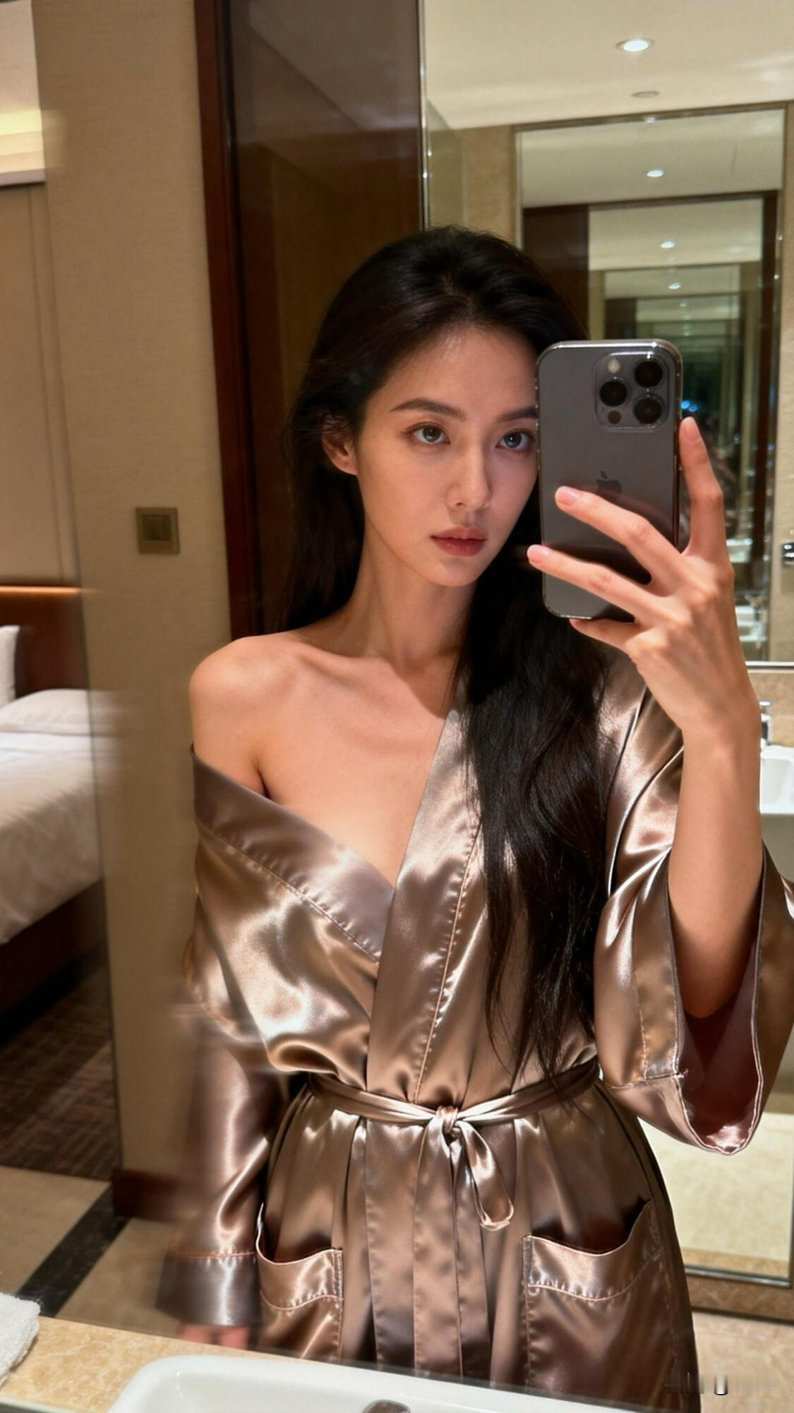 奢华浴室自拍,丝质睡袍尽显优雅气质💄✨