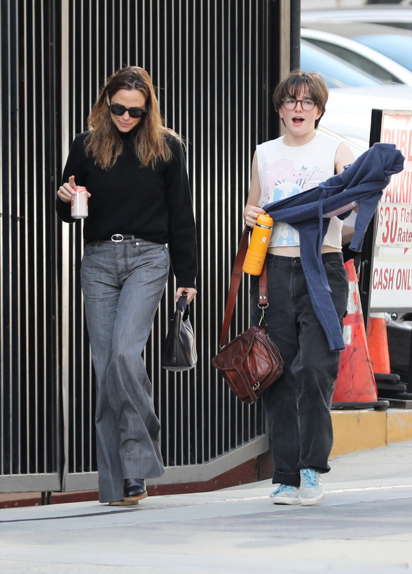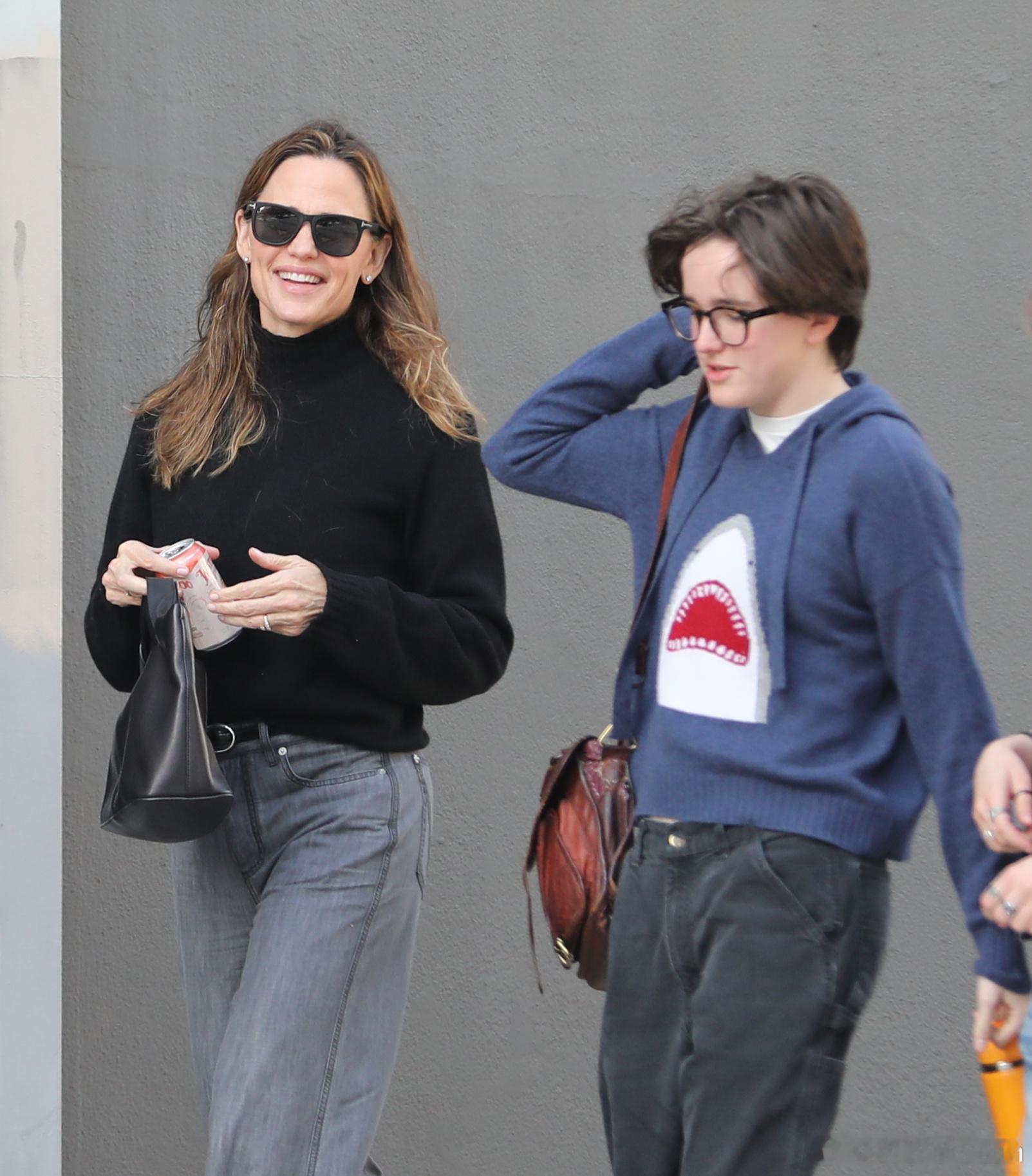 Jennifer garner詹妮弗加纳和前夫Ben Affleck又一次重聚,陪同老二Fin还有Ta的朋友一起前往剧院观看《Stereophonic》音乐剧
