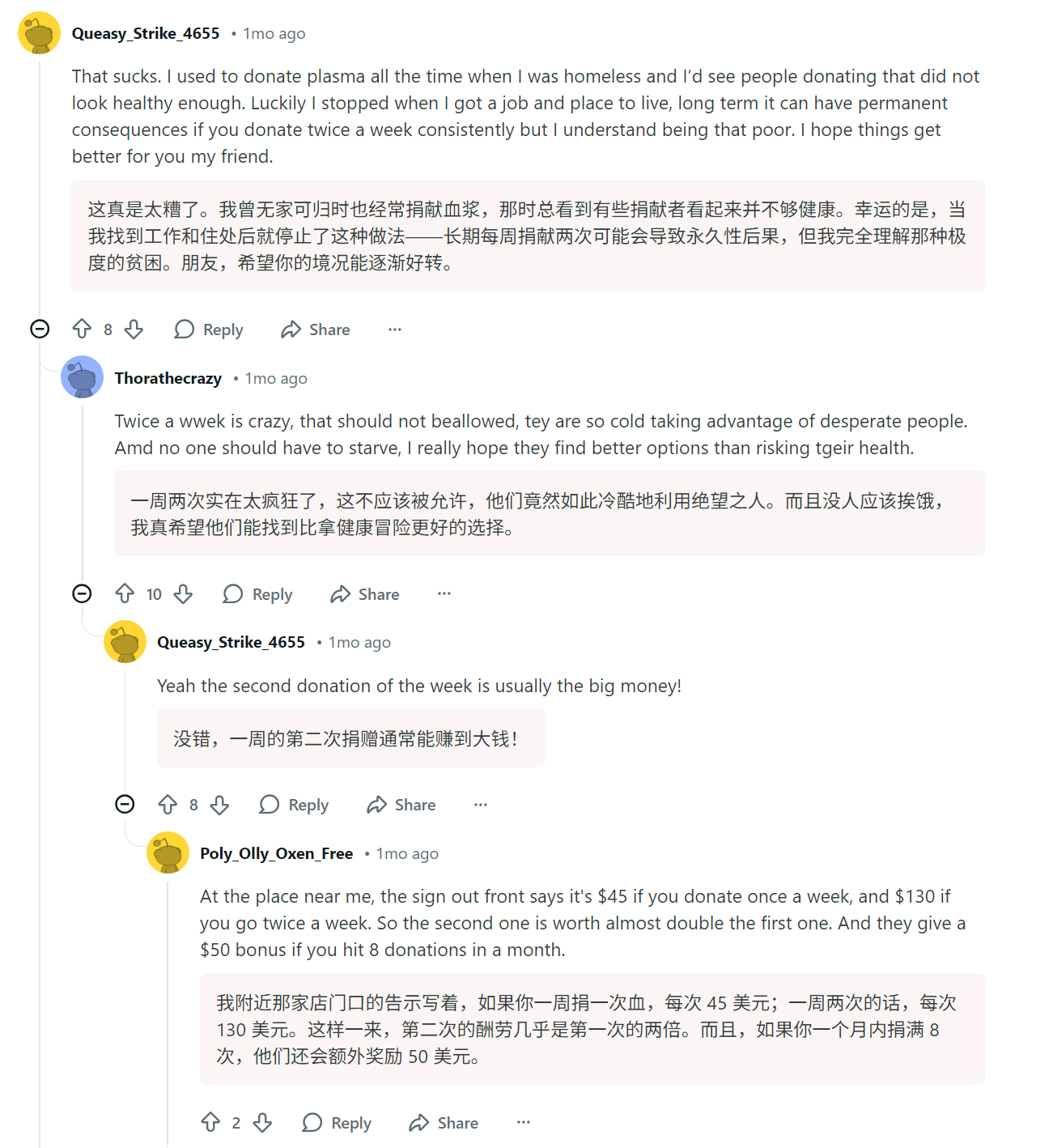 🔻真正的美国人:“当我穷到连血都一文不值……”🔻评论区:“卖血前吃点蛋白粉,或者扁豆。”🔻还是评论区:“你还可以去试药啊。”美国斩杀线热点现场海外新鲜事牢A