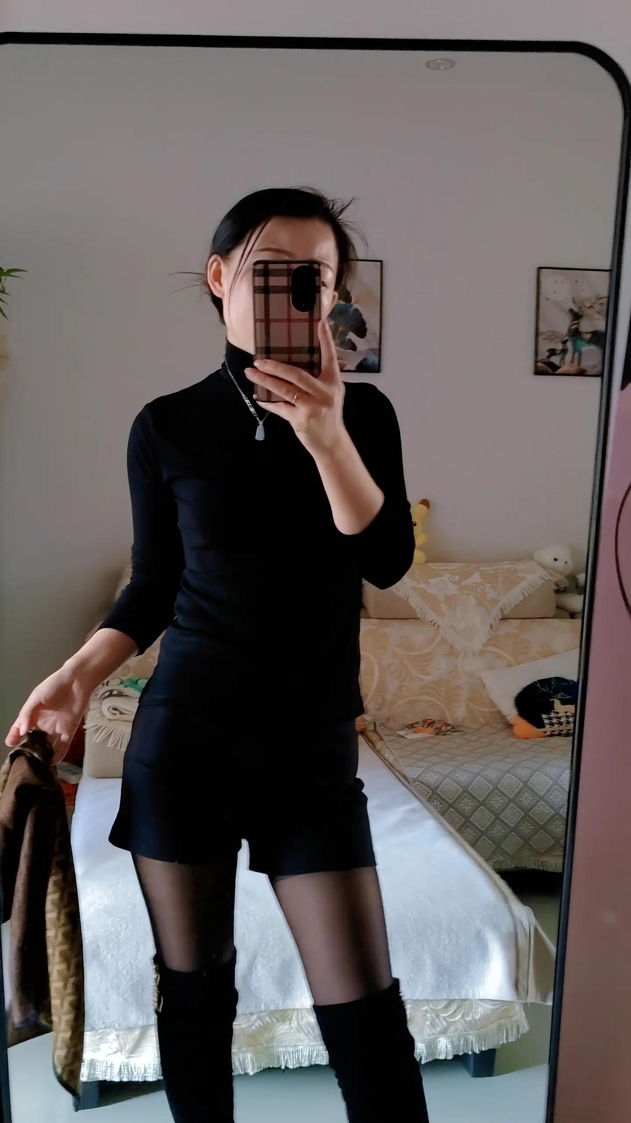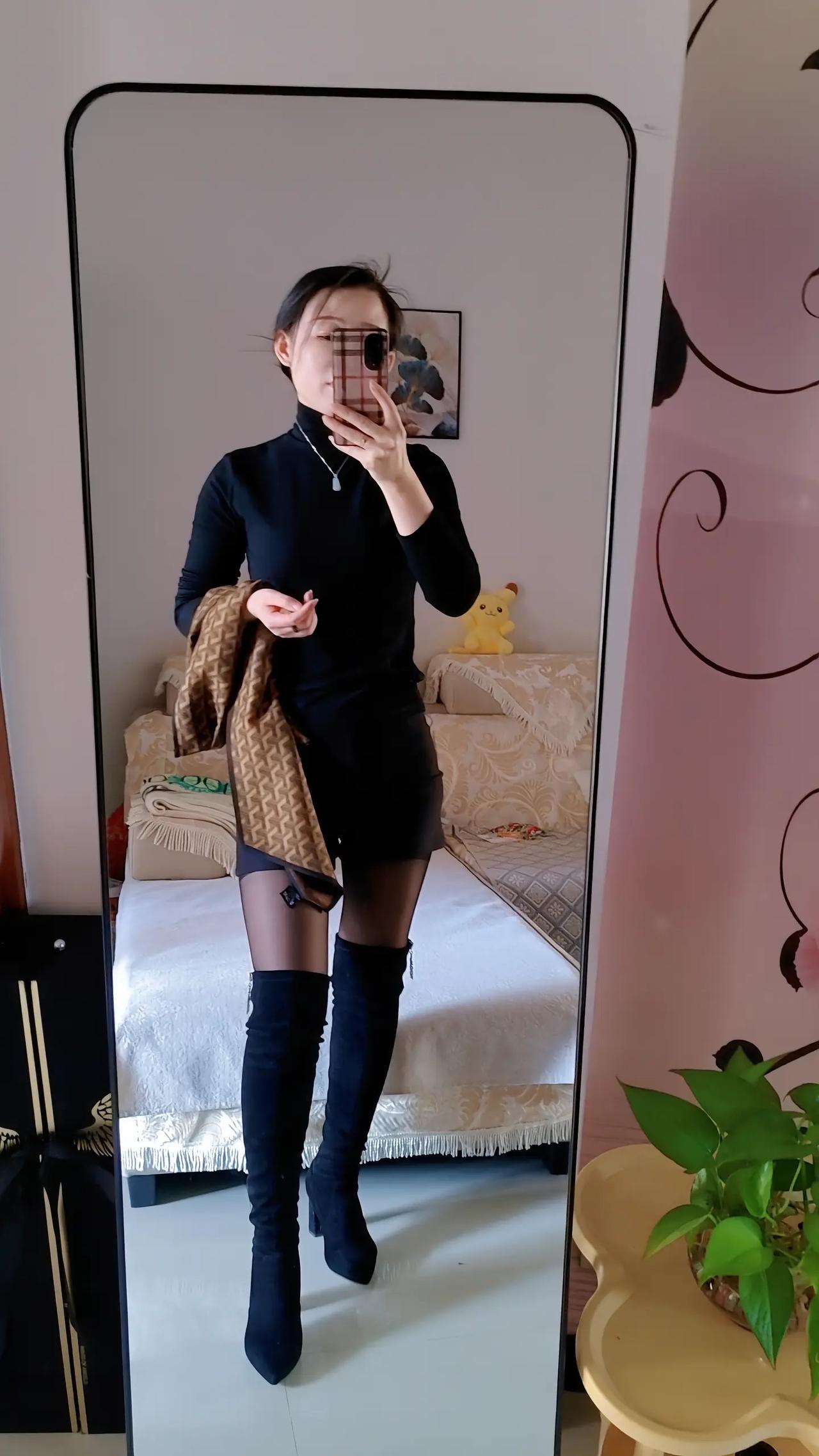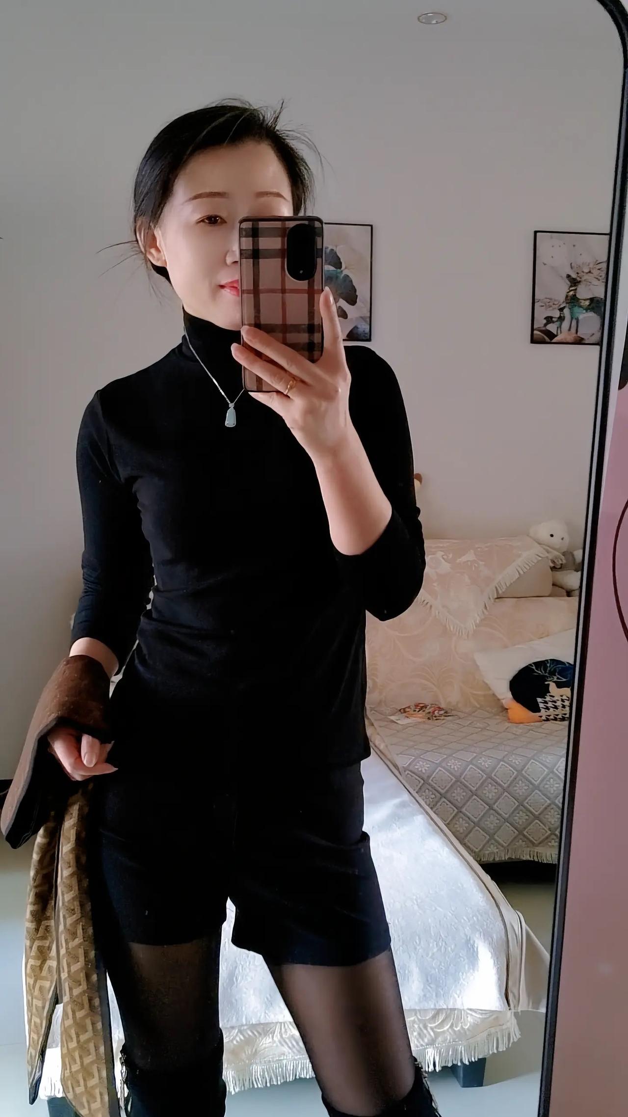 黑色高领毛衣搭配短裤,优雅又帅气!👗👠