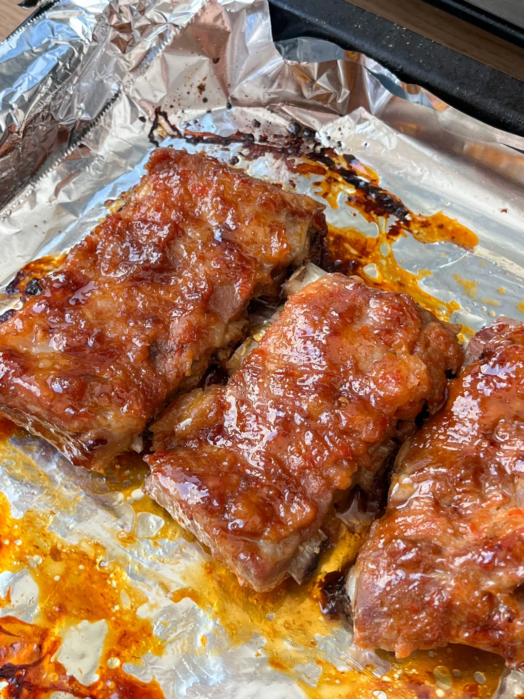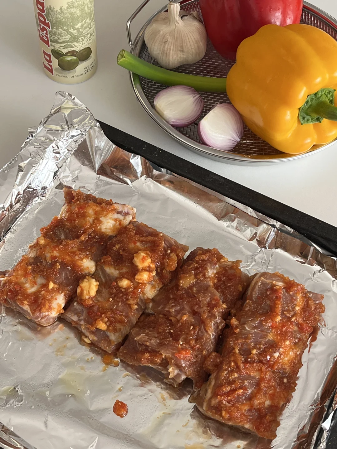 用锡纸盖上180度烤1个小时 把排骨烤软