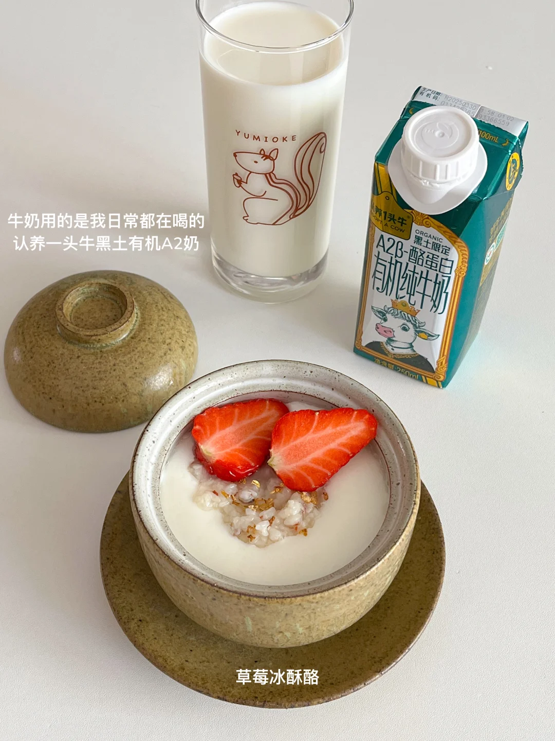这个冰酥酪做法也很简单 就是牛奶+甜米酒汁