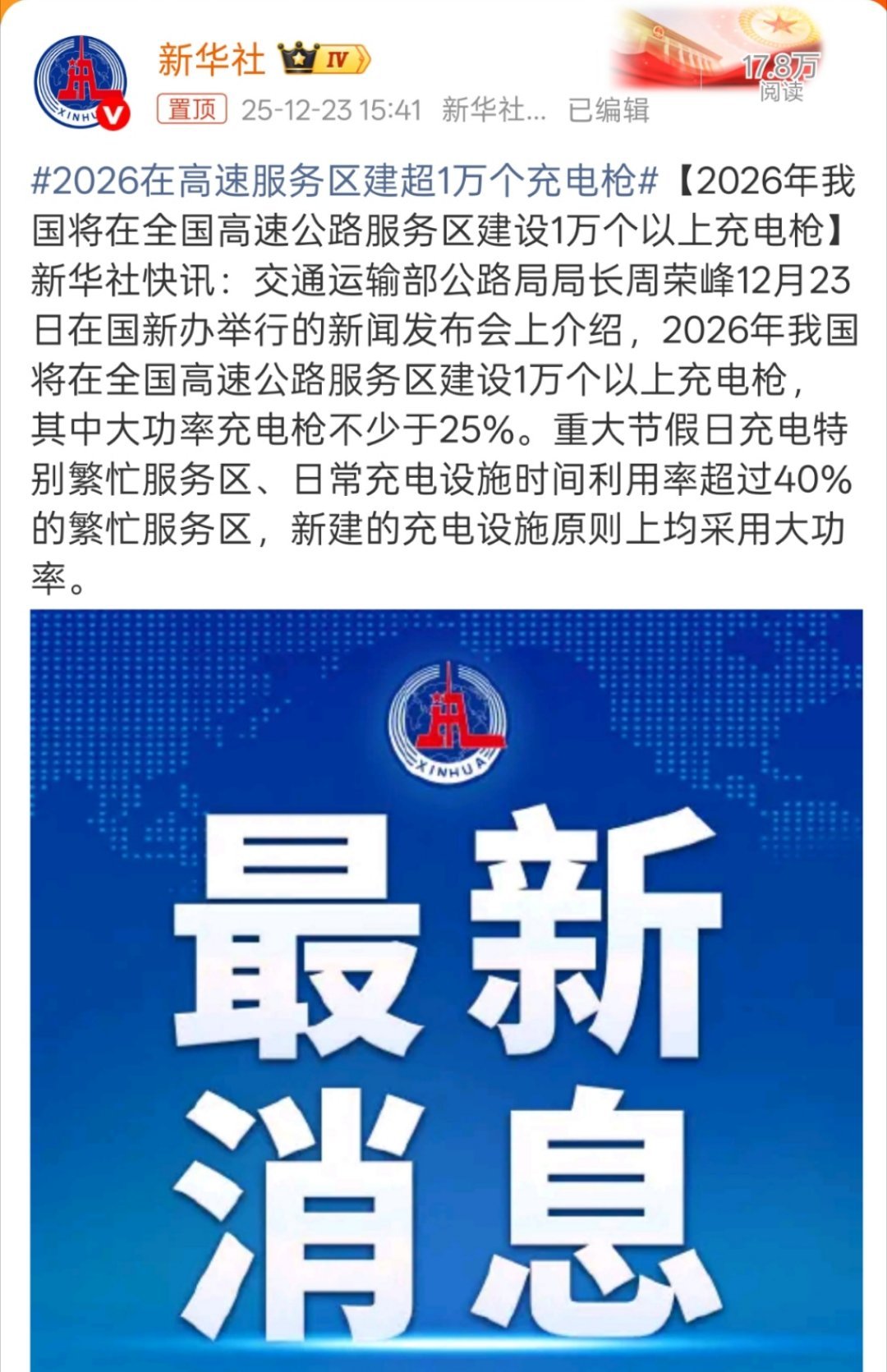 2026在高速服务区建超1万个充电枪又增加了充电枪,而且大功率充电枪不少于25%,也能提高利用效率。