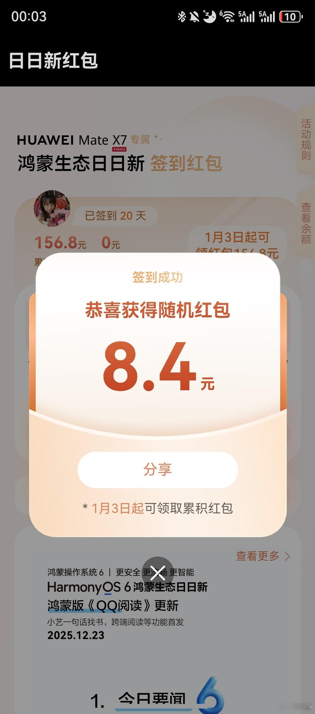 哇!我的 Mate 80 Pro Max 领鸿蒙日日新红包,领到 99.9 元
