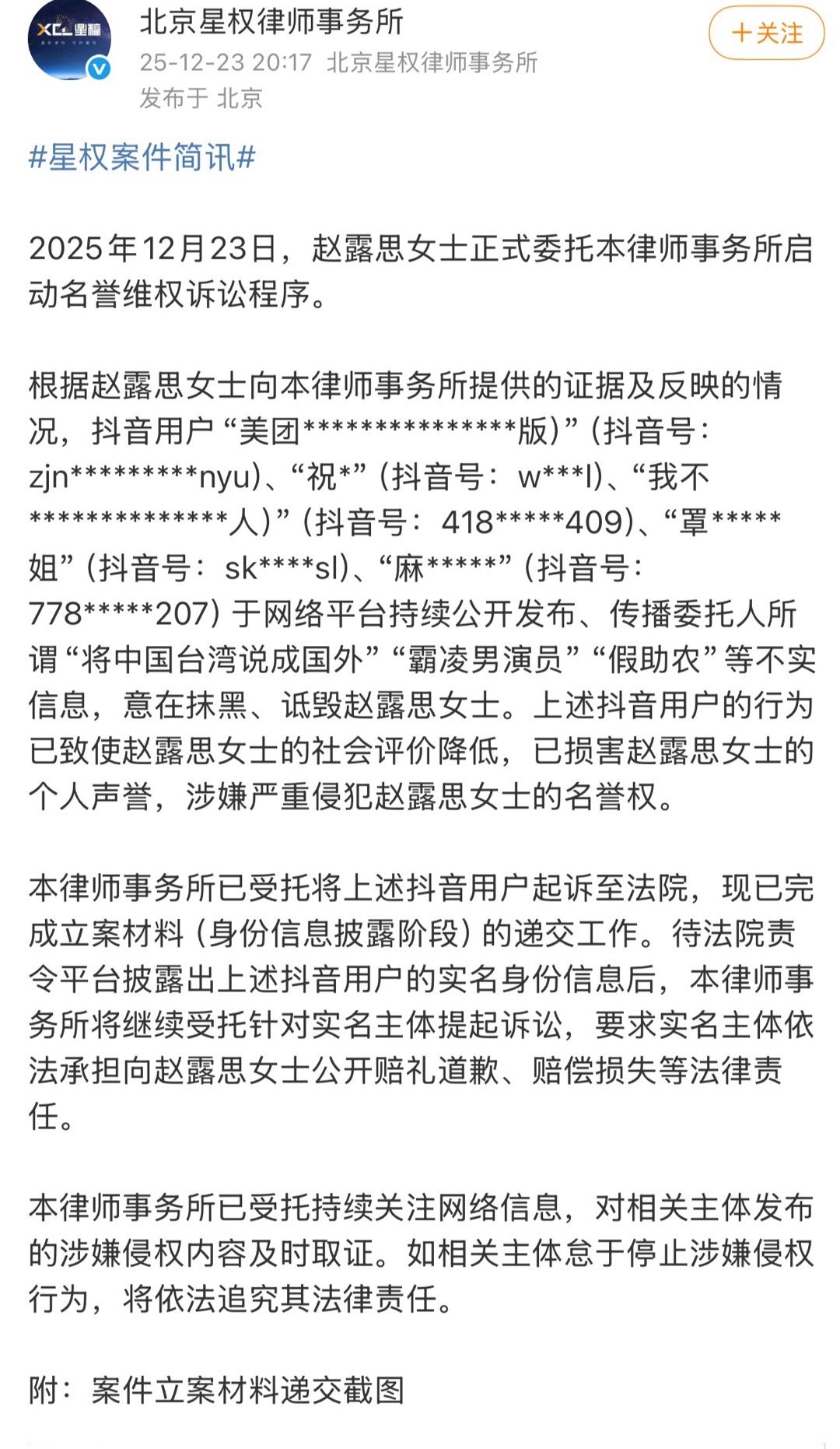 赵露思告黑维权了,这次是🫘,效率挺快的,🫘的流量蛮大的,任何一个造谣污蔑造成的影响都很大,大家还是谨言慎行。