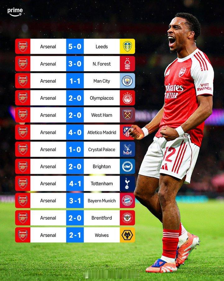 阿森纳本赛季主场战绩:12场比赛11胜,进31球失4球,8场零封 英超联赛 阿森纳著名教授