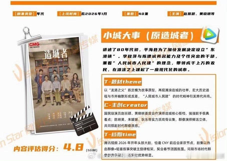 【开年大剧】小城大事开启播前招商 由赵丽颖、黄晓明、朱媛媛主演的2026腾讯视频开年头部大剧+央视八套开年大剧《小城大事》开启招商,腾讯视频1月10日起即将献映!