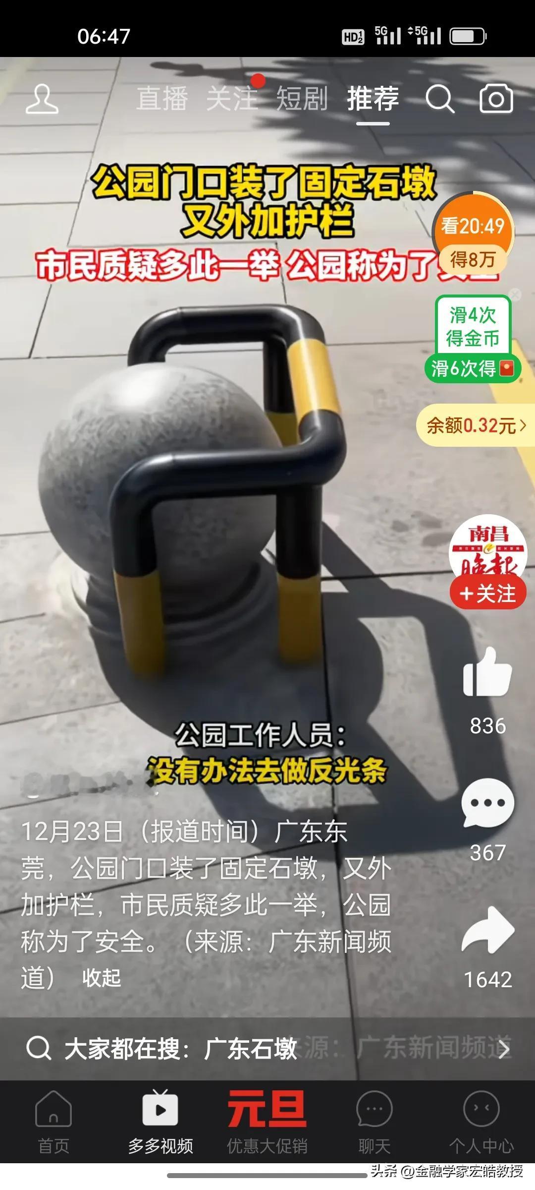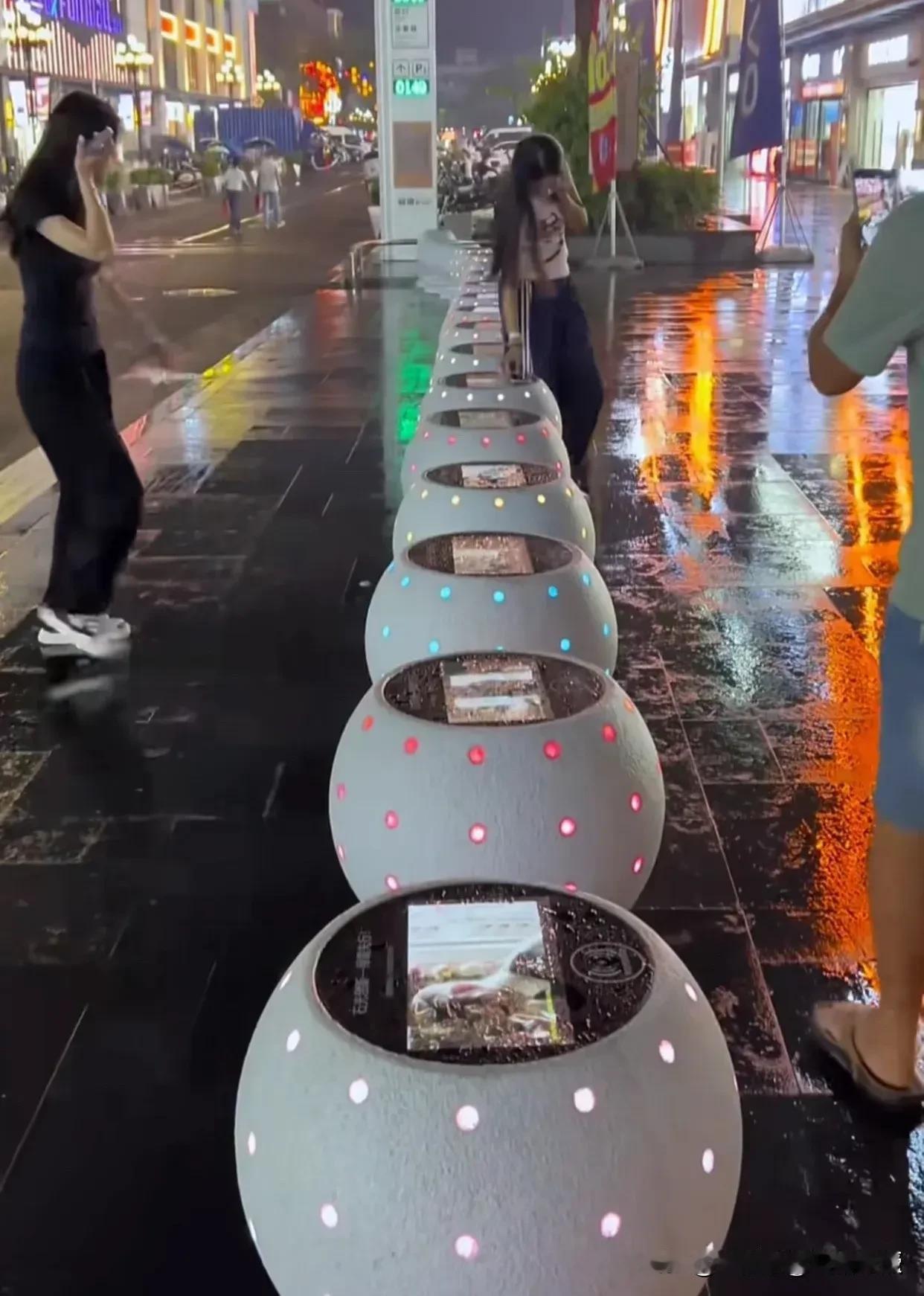 同样在广东,石墩子的差别这么大!刚刚看到在东莞的公园门口,工作人员给石墩子还加了护栏,被市民吐槽多此一举,公园称是为了行人安全。网友看着这护栏更像是保护石墩子的安全。 再看看深圳龙华后浪新天地的路边石墩子,可以坐着,也可以手碰触摸屏,可以充电,看视频,监测人流量等路况,科技感十足。