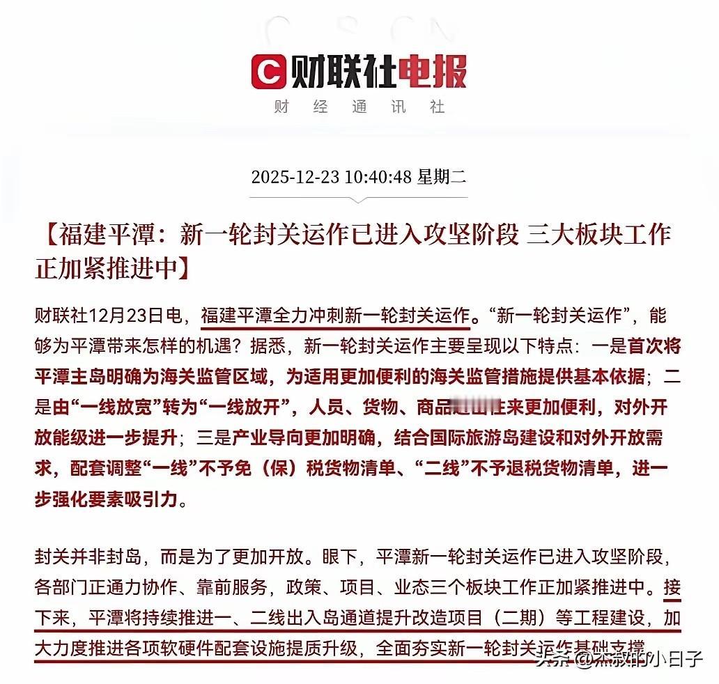 海南封完平潭封?这是封关上瘾还是? 不过海南封关和平潭封关不一样,平潭的海峡自贸区主要是针对台湾,海峡两岸,而海南是全球。 第二,平潭自贸区其实就有,不过后期不伦不类,也就没什么声音了,但是福建的平潭是祖国距离台湾最近的地方。 地段摆在那里!这就是优势,所以重新优化,升级封关! 这次估计要成了!