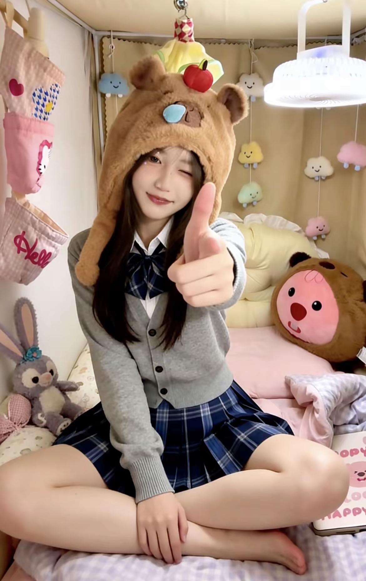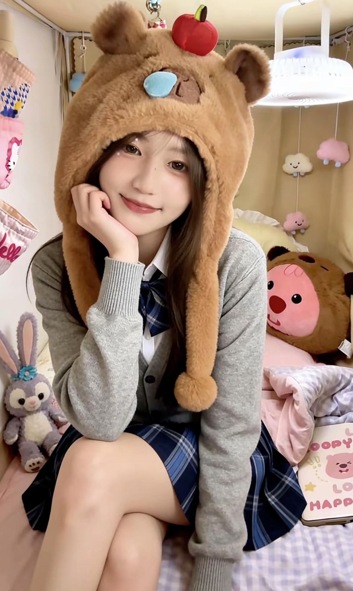宿舍自拍系列。一键切换呆萌模式,今天也是被自己可爱到的一天✨ 头套的快乐 生活小确幸卖个萌 宿舍