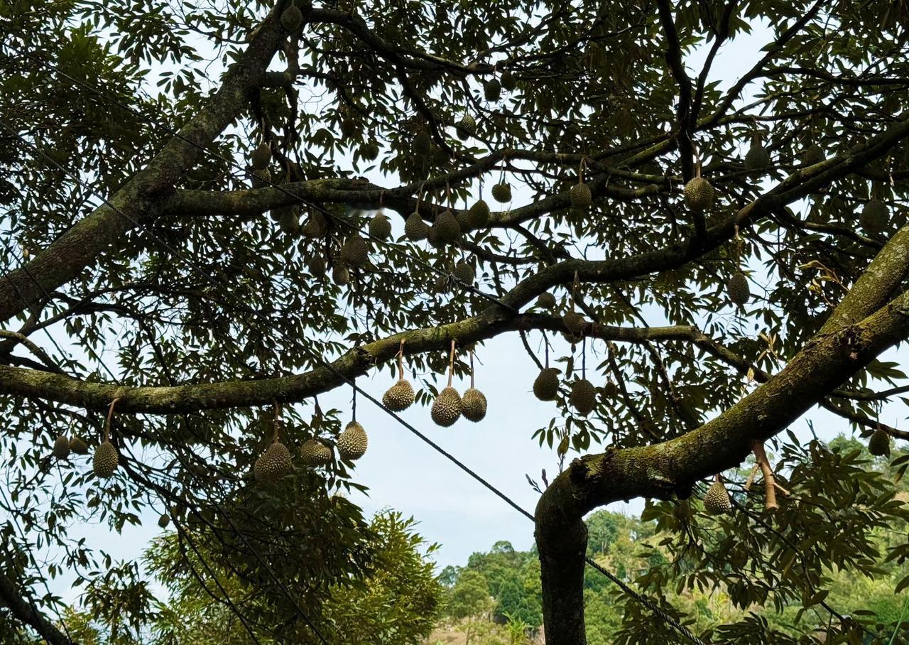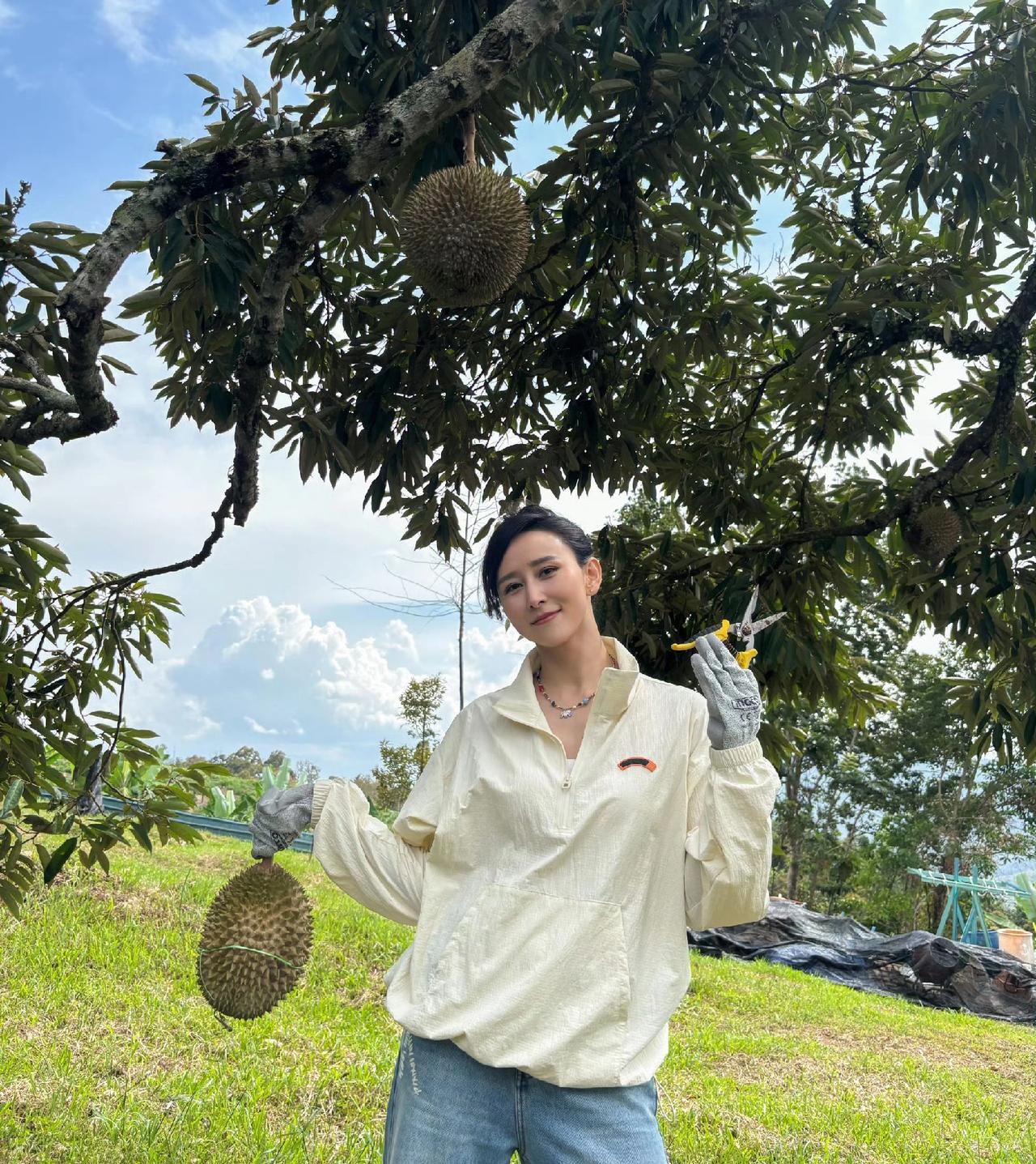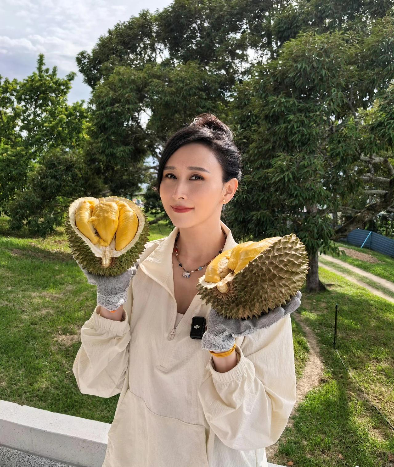 胡静在马来西亚榴莲自由了,每年都会晒她和老公朱兆祥在马来西亚的榴莲庄园,园子里什
