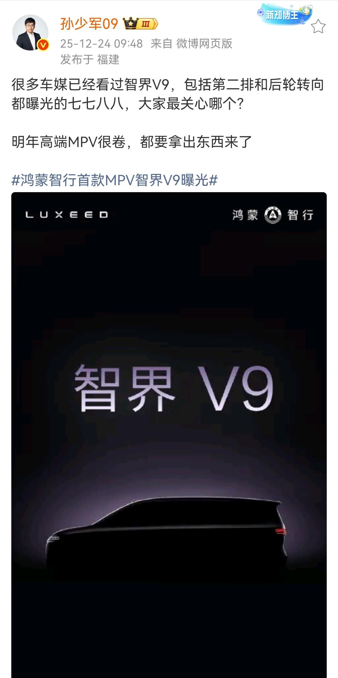 孙少军:很多车媒已经看过智界V9,包括第二排和后轮转向都曝光的七七八八,大家最关心哪个? 智界V9 车媒看完车过后的评价都挺高的,这说明V9有其它品牌MPV所不具有的东西。同时,让车媒看了也意味着V9开发已经完成。 大家关心的还是V9的价格,价格是影响车辆销量的关键因素。 各位是怎么看的,欢迎评论区留言。