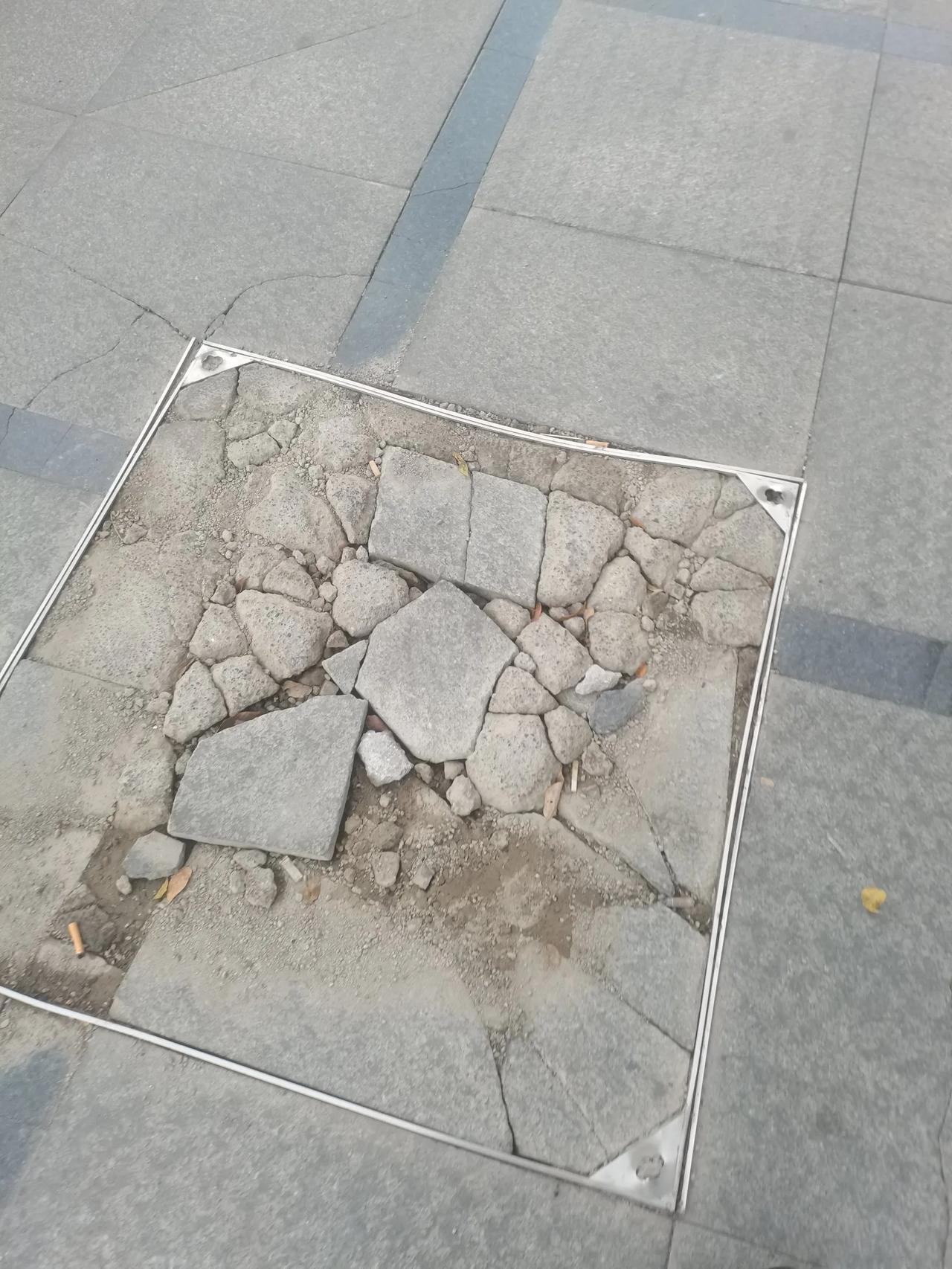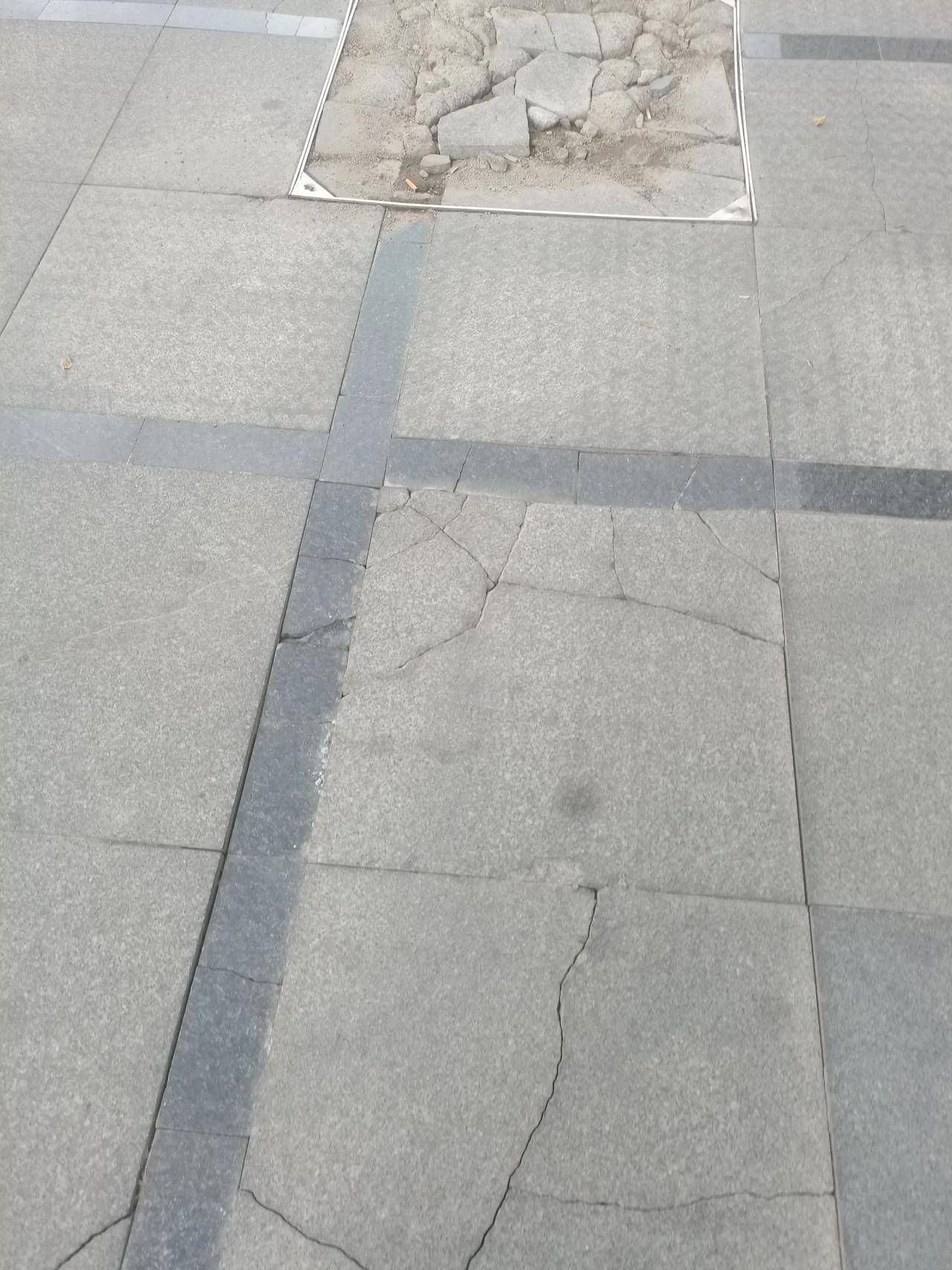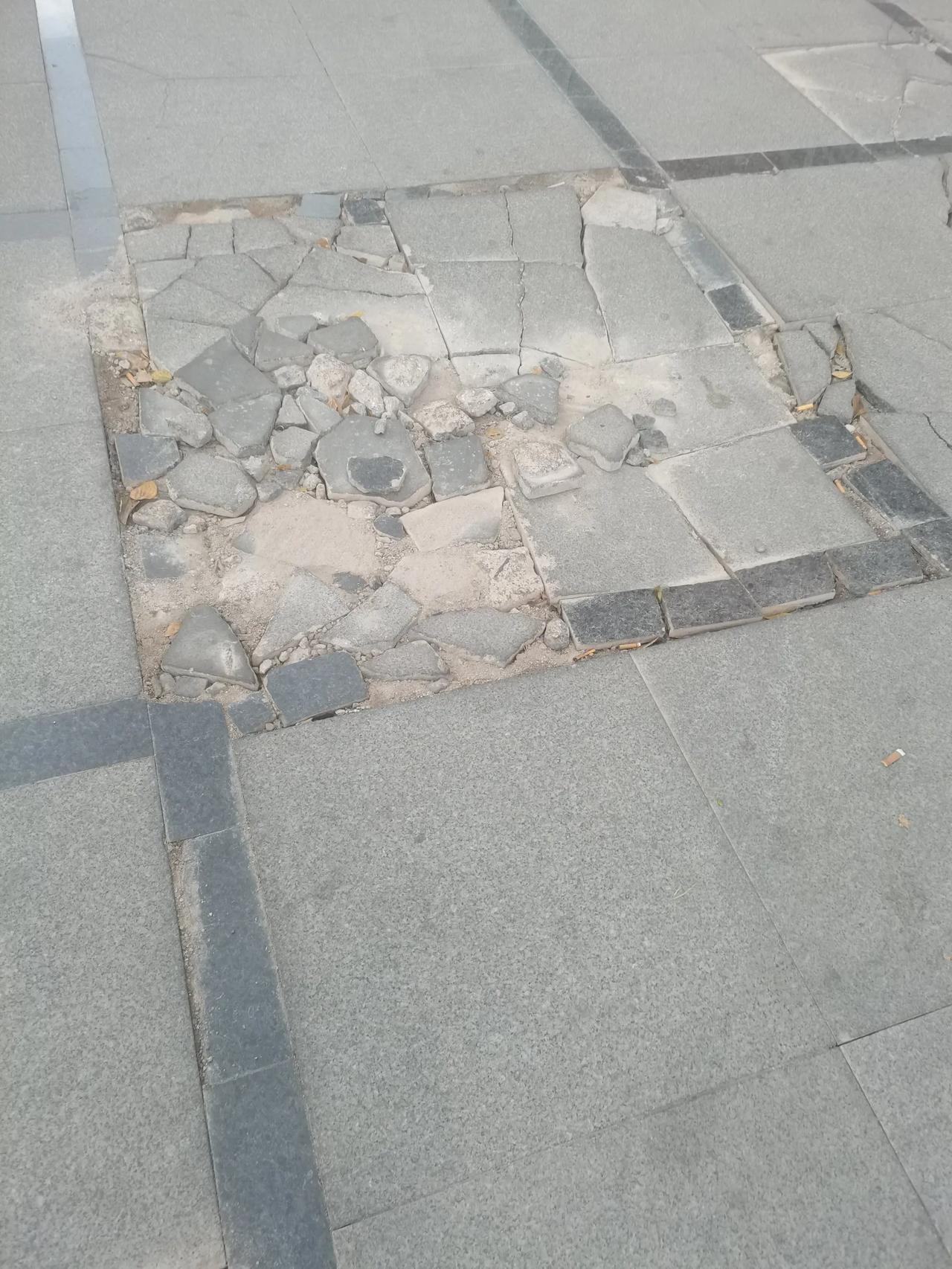 昆明这边的这个地面,你说为什么不做成泥清路面,水泥路面也好点,这个地砖还是最薄的,一年换几次,真是有钱的地方,思想先进!以上仅供参考,属个人意见!在南亚边上的地铁站口处!
