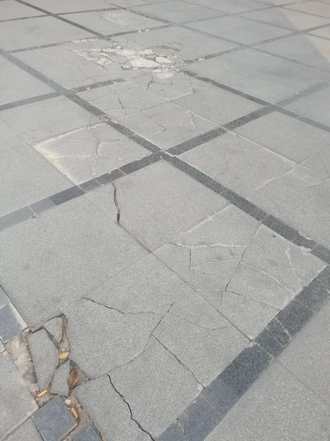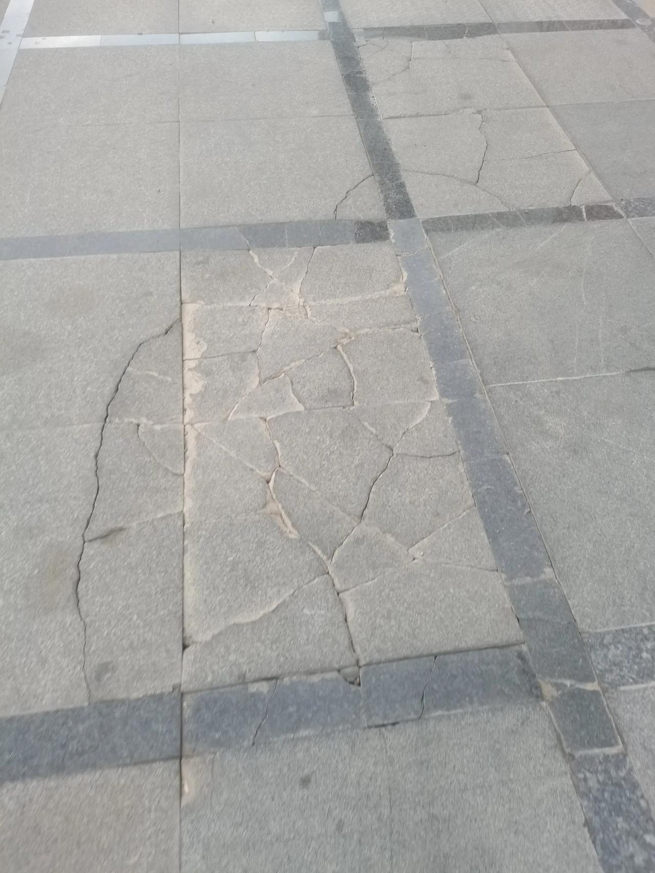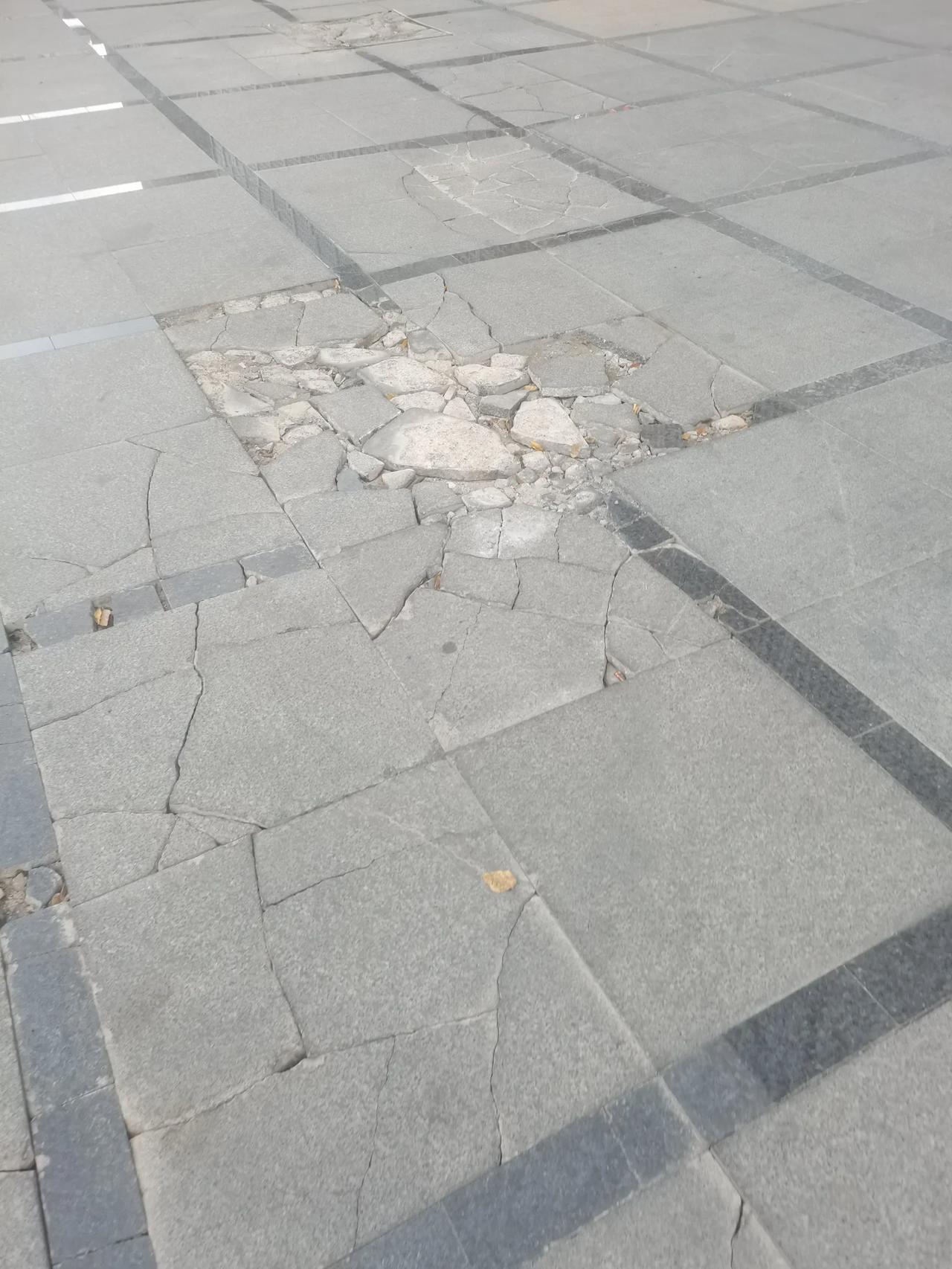 昆明这边的这个地面,你说为什么不做成泥清路面,水泥路面也好点,这个地砖还是最薄的,一年换几次,真是有钱的地方,思想先进!以上仅供参考,属个人意见!在南亚边上的地铁站口处!