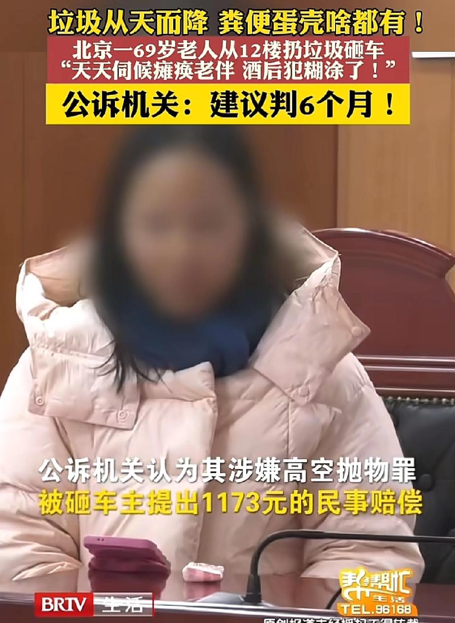 在北京,一位69岁的老人从12楼扔下垃圾,砸中了楼下汽车的挡风玻璃,致使玻璃破碎。随后,老人被警方抓获。令人惊愕的是,扔下去的垃圾里竟有人的粪便,这让车主愤怒不已,当即报了警。 在法庭上,老人自述家中老板瘫痪在床,全由自己照料,十分辛苦,儿子却对他们不管不顾。声称自己以前从未有过高空抛物的行为,当天是因为喝了点酒,心中烦闷,才一时糊涂犯了错。 车主提出了1173元的民事赔偿要求,公诉机关建议判处老人6个月的刑罚。老人表示愿意承担赔偿责任,恳切地请求法官不要对她判刑。 不管怎样辩解,不管生活如何困苦,每个人都要为自己错误的行为承担责任。 不能高空抛物的宣传已持续许久,相关规定甚至被列入了法律,但仍有人对此置若罔闻,依旧我行我素。这种行为既是对自己的不负责,也是对他人的不尊重。 想一想,如果自己被丢弃的垃圾砸中会是什么心情? 有些人总以为“随手扔”没什么大不了,却忘了高空之上,重量会被重力放大,小物件也能变成“致命凶器”。 也许是一片碎玻璃,也许是一个外卖盒,当它从高空坠落的那一刻,就可能夺走一个人的健康,甚至生命。 守护家园的平安,从管住自己的手开始。不高空抛物,是文明,更是责任。 来源:BRTV生活这一刻