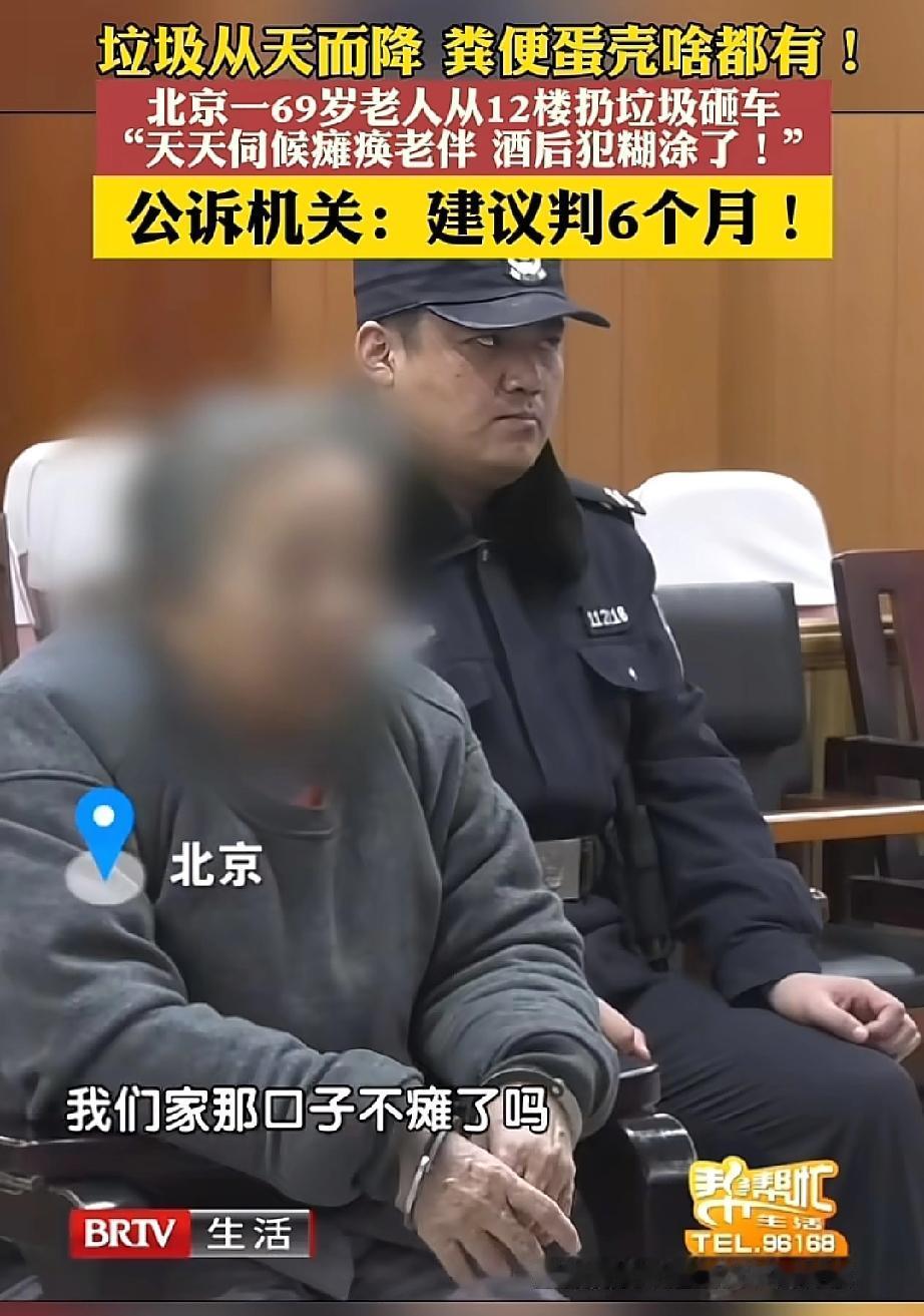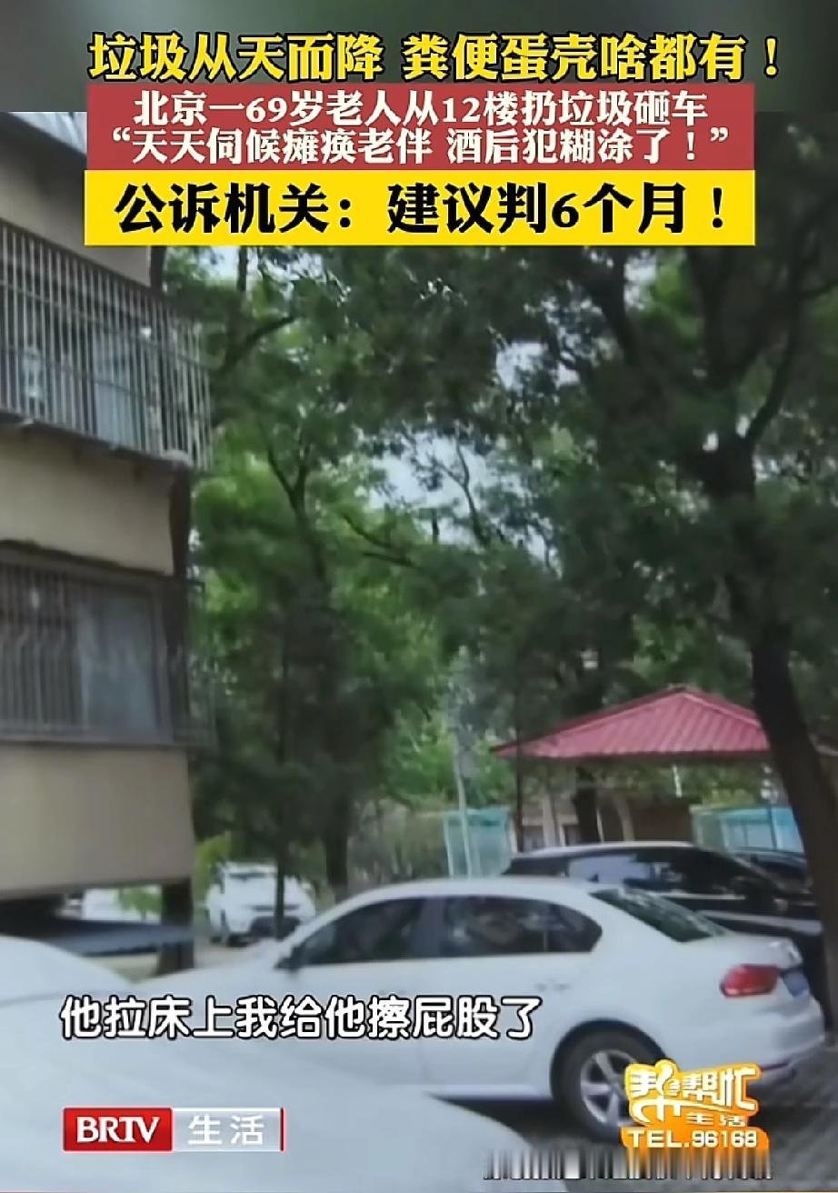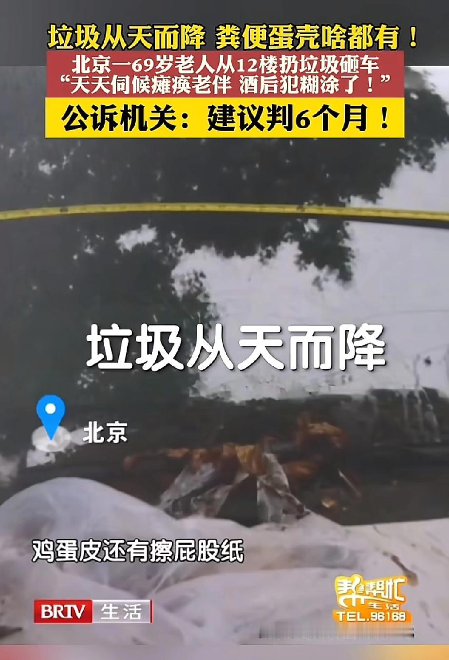 在北京,一位69岁的老人从12楼扔下垃圾,砸中了楼下汽车的挡风玻璃,致使玻璃破碎