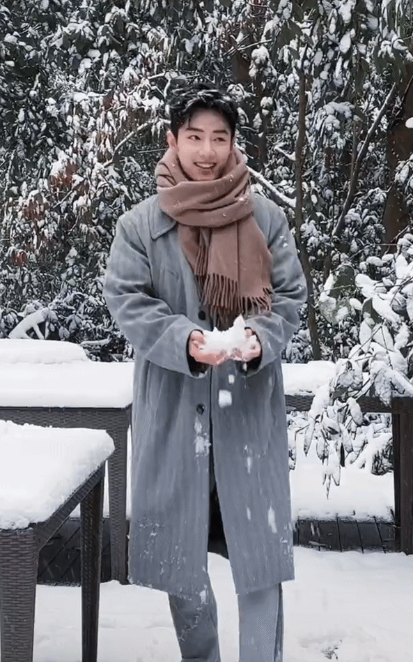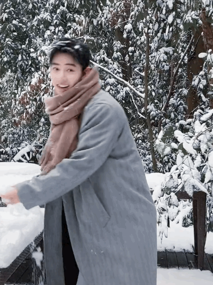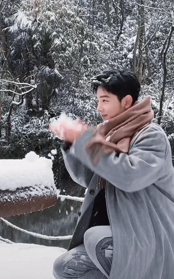 肖战堆的雪人倒了唉,南方孩子抓雪连手套都不带,这么喜欢雪来我家呀,我们这边经常下雪