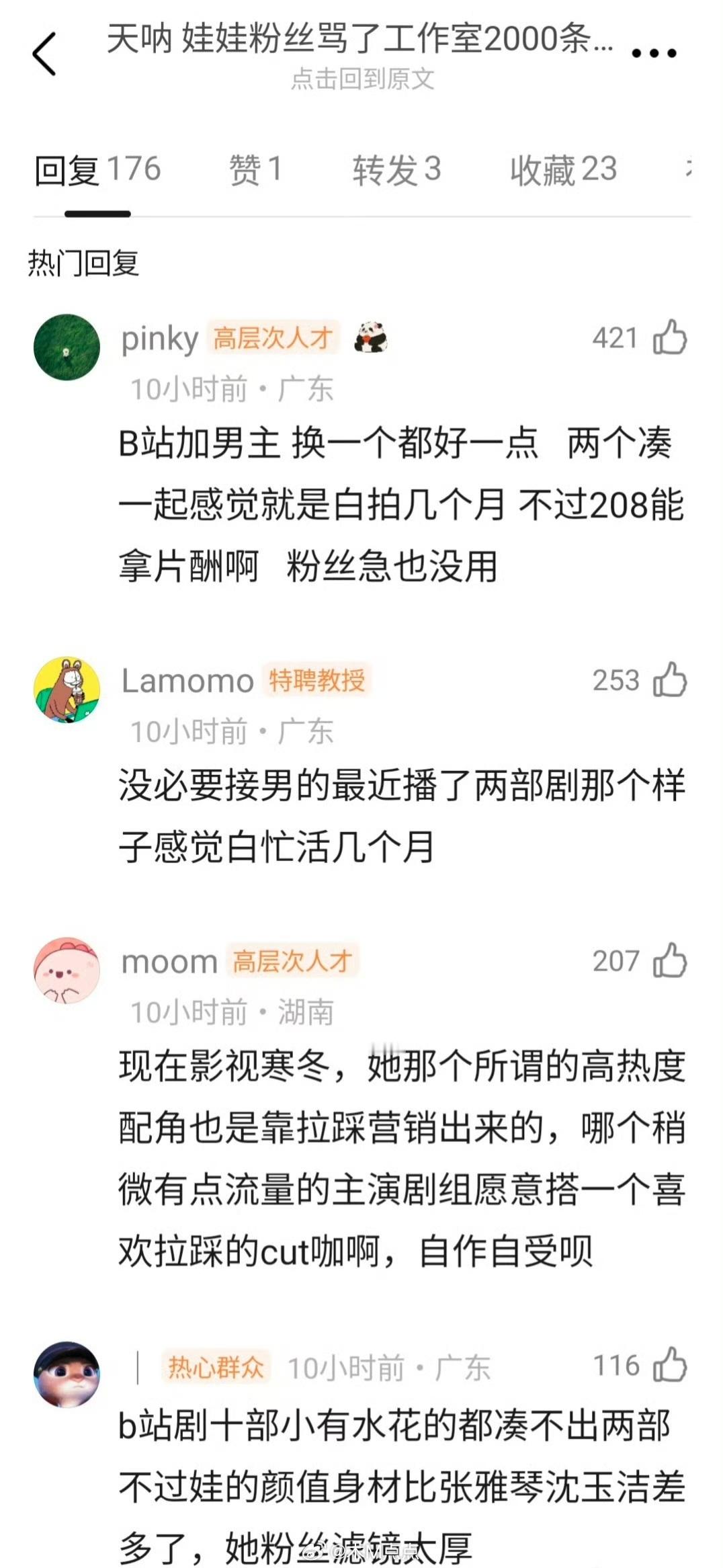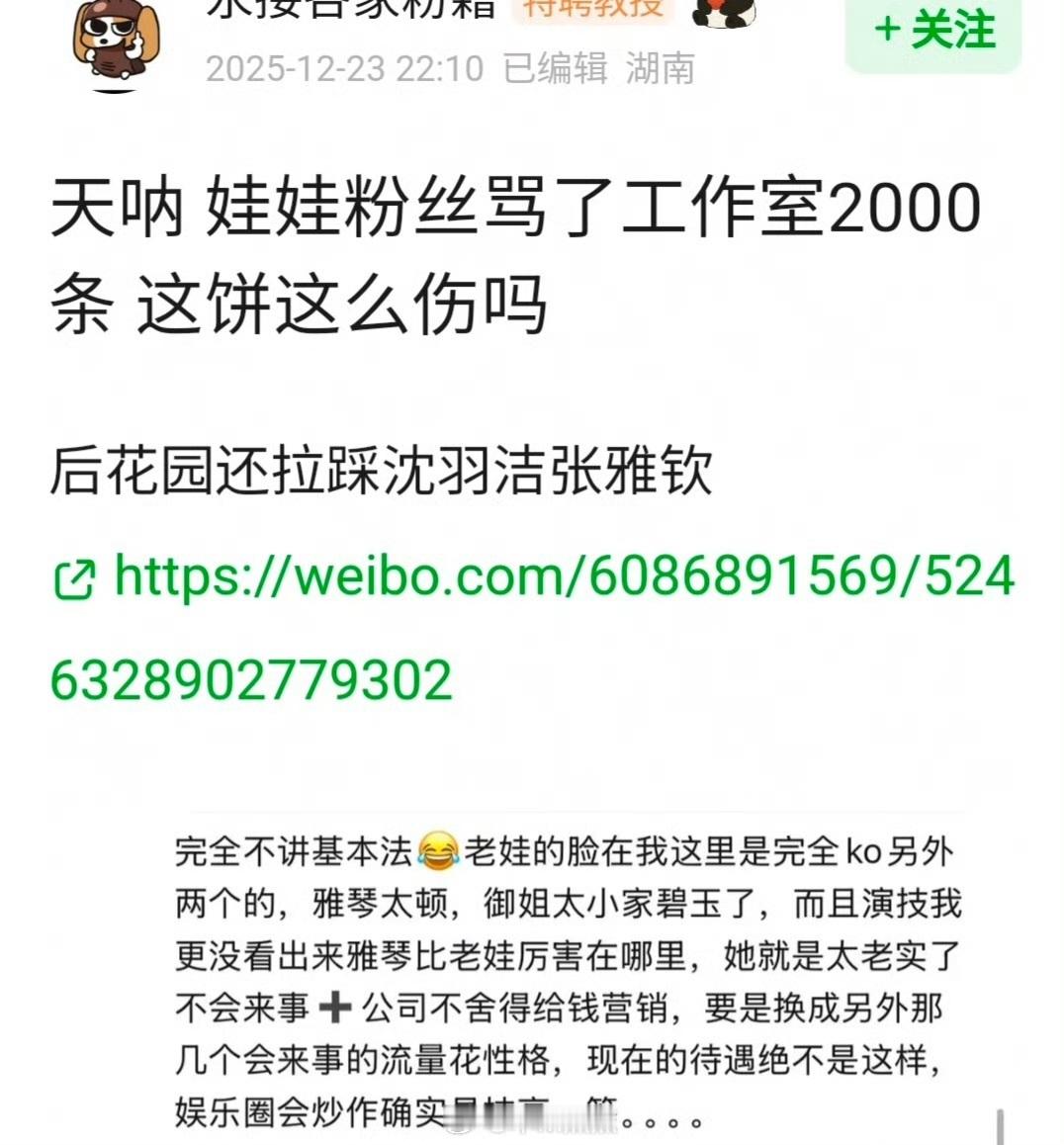 代露娃粉丝在工作室下面骂了2000条,排字永拒毒饼,还拉踩了张雅钦和沈羽洁