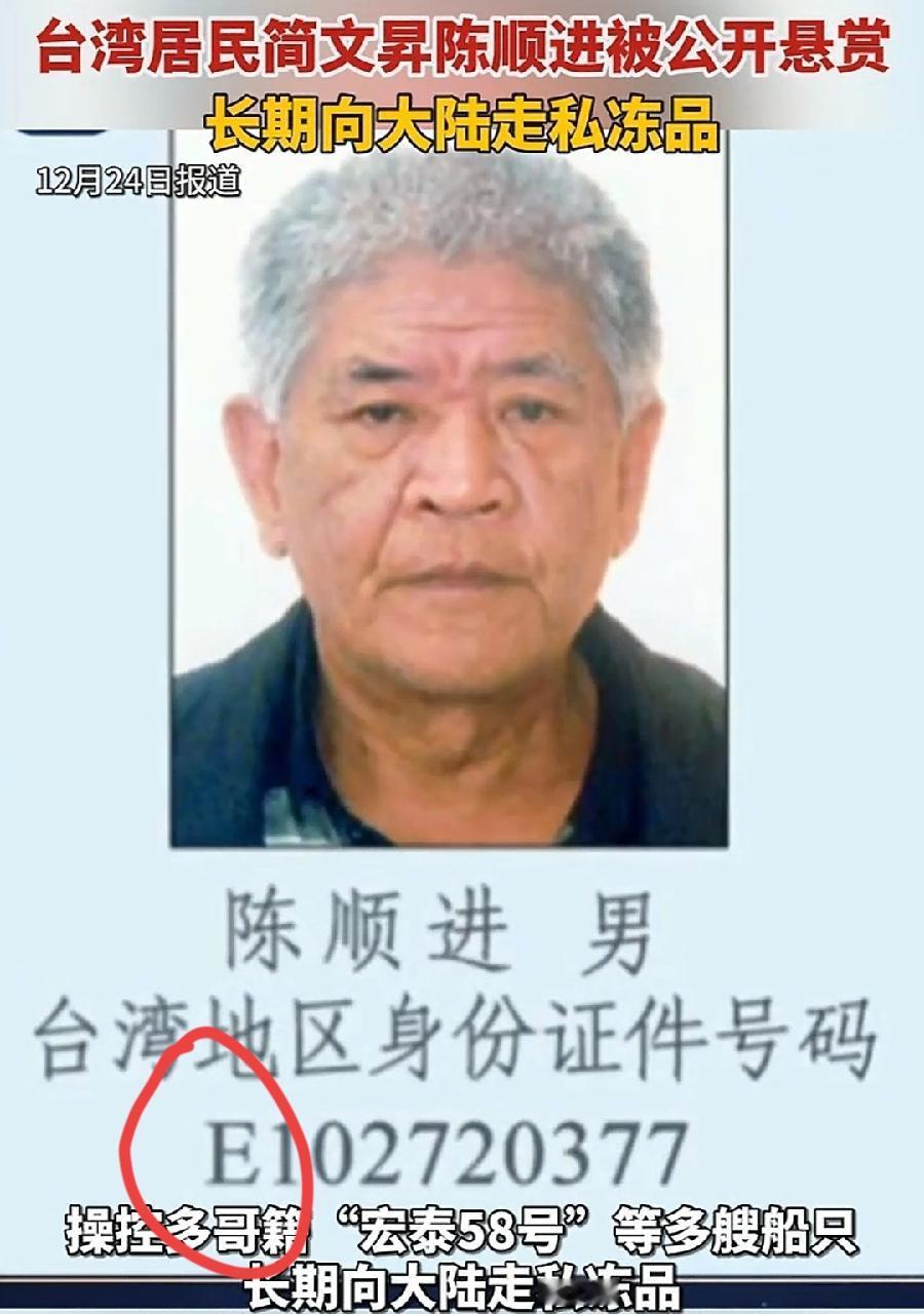威海通缉2名台湾人,看身份证号码,陈顺进E开头、高雄人,简文升F开头、新北人,与咱们身份证不同,看不出年龄,不过看面相,目测陈5、60岁,简30多岁,搞冻品走私,常年风吹日晒,显得也沧桑,2014年就被漳州通缉了,11年都没在逃,可见有点本事!相信在威海、漳州两地协同追捕下,很快将缉拿归案!