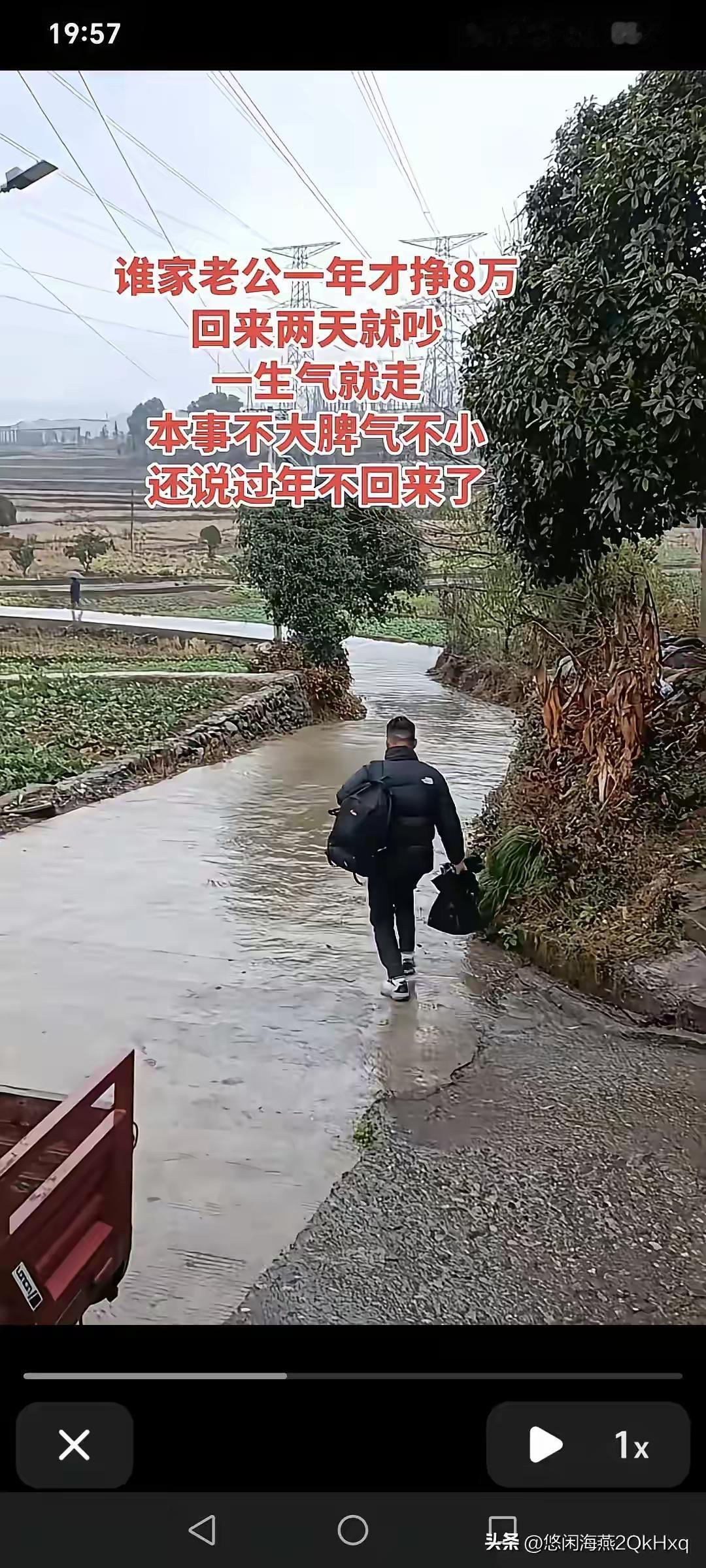 男人在外面打工了一年,提前回家把存了一年的8万块钱交给妻子,顺便想抱一抱妻子,没想到却遭到妻子的强烈数落和反抗!妻子说:“干了一年怎么才挣8万,你看隔壁家的大哥一年挣十几万!”妻子话音刚落,两个人就开始吵起来!相互指责,相互埋怨! 男人最后忍无可忍,回到家坐都没坐一下!提着行李箱,冒着蒙蒙细雨,头也不回的走了! 换作谁都会觉得委屈!长年在外为这个家打拼,辛苦了一年!最后却得不到妻子一丝丝的理解和安慰! 作为男人真的不容易!有的人一年挣5万,有的人一年能挣10万,有的人一年能挣20万! 每个人都不一样!一个打工人一年怎么努力也挣不到十几万!夫妻同心,其利断金!夫妻不合,家运难得!