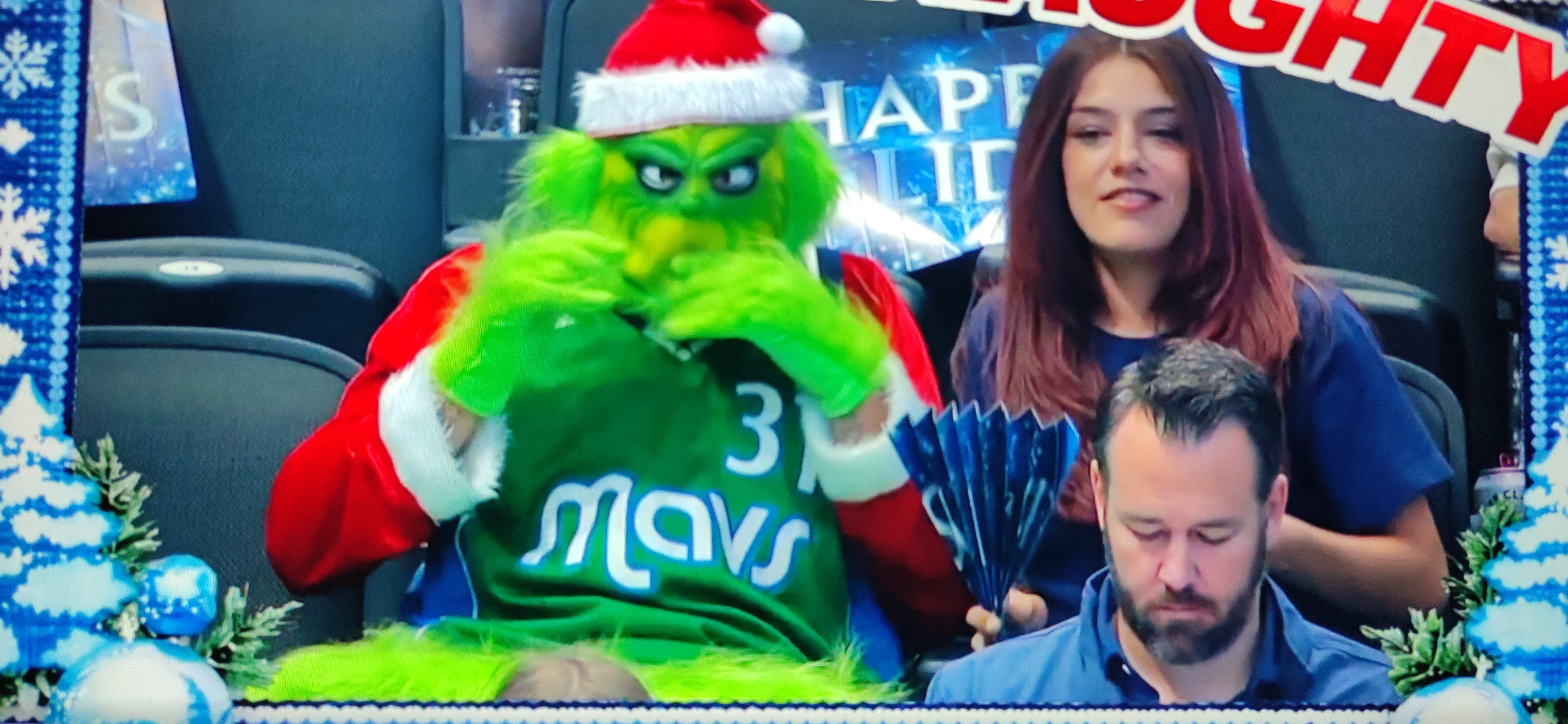NBA常规赛,掘金队客场130:131不敌独行侠队,第四节他们追平了比分,最后几秒钟,冲到篮下的约基奇选择把球传给了底角的沃特森,沃特森三分不中,错失绝杀。 第四节,球队领先时,约基奇在场下很松弛。现场的观众有搞怪的圣诞装扮。