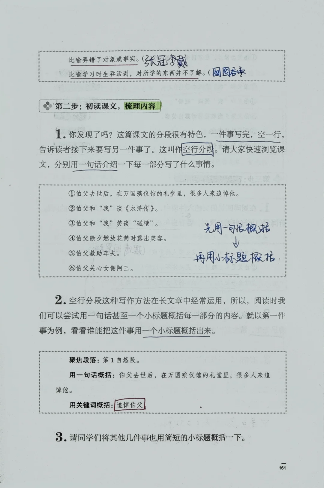 ▫️文章语言朴实、细节生动,空行分段的结构让脉络清晰,适合引导学生自主梳理内容,结合背景资料实现长文短教、深文浅教。
