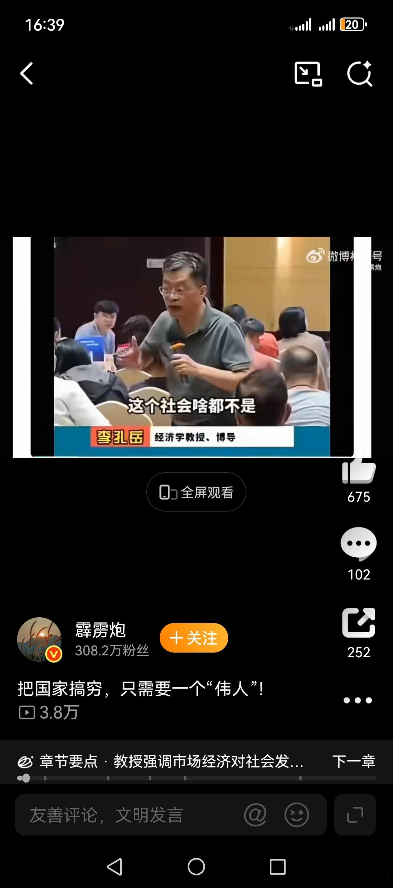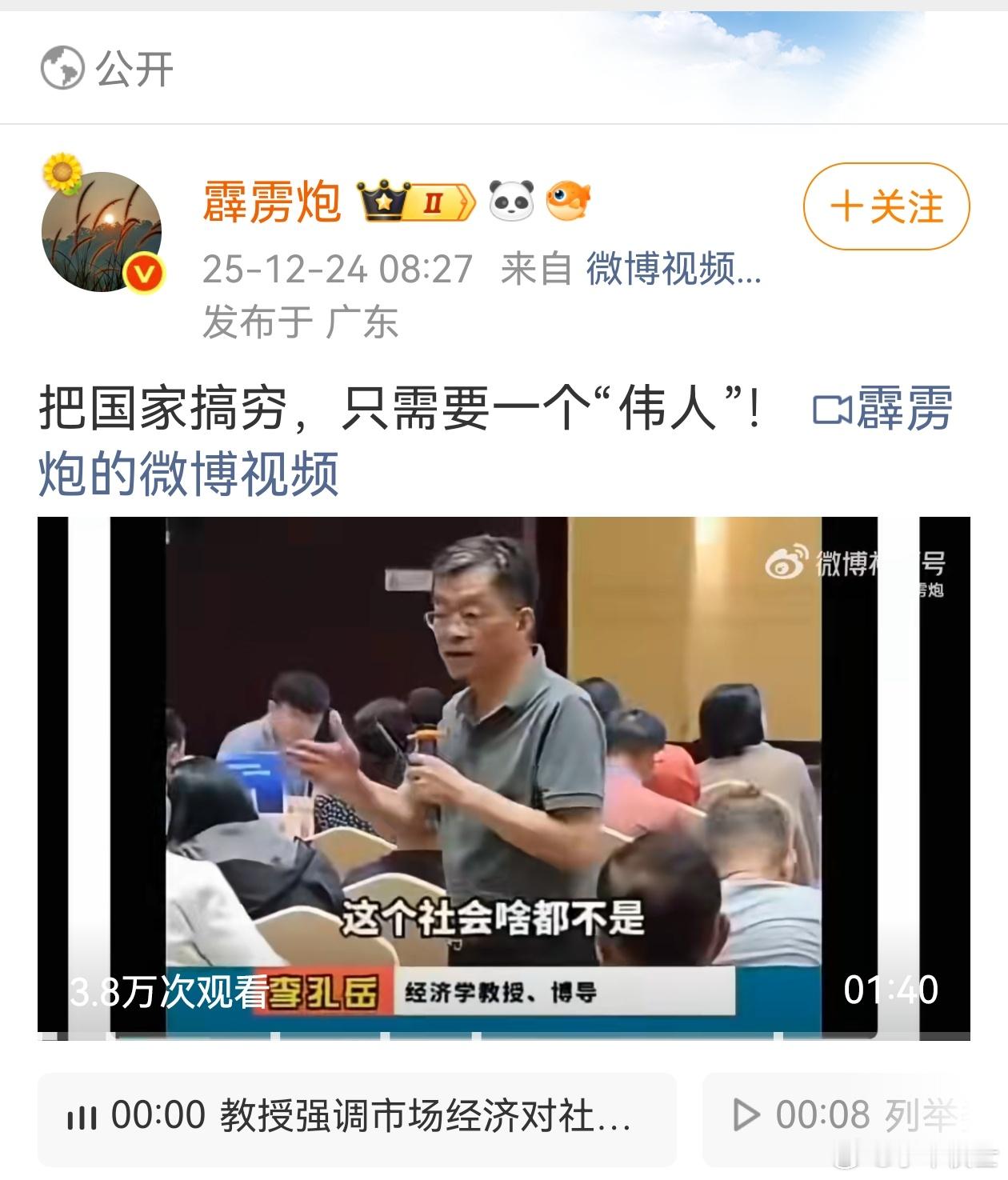 这段视频,最近好像在网上很火,我刷到好几回了。其一,我们也是市场经济,叫社会主义市场经济。其二、我们是国企民企共存,互相促进,互相弥补,并不存在打压民企。这个李教授以津巴布韦等四国为例,想影射什么?其三、市场经济是不是应该遵循自由贸易,那么,以美国为首的西方国家,不让我们卖这个,不然我们卖那个,还在高科技方面封堵我们,这是不是违背市场经济原则,我觉得这个李教授应该批评他美爹才是,大家说对不?至于这个博主,拿“伟人”进行内涵,我觉得属于蔫坏,属于阴毒。