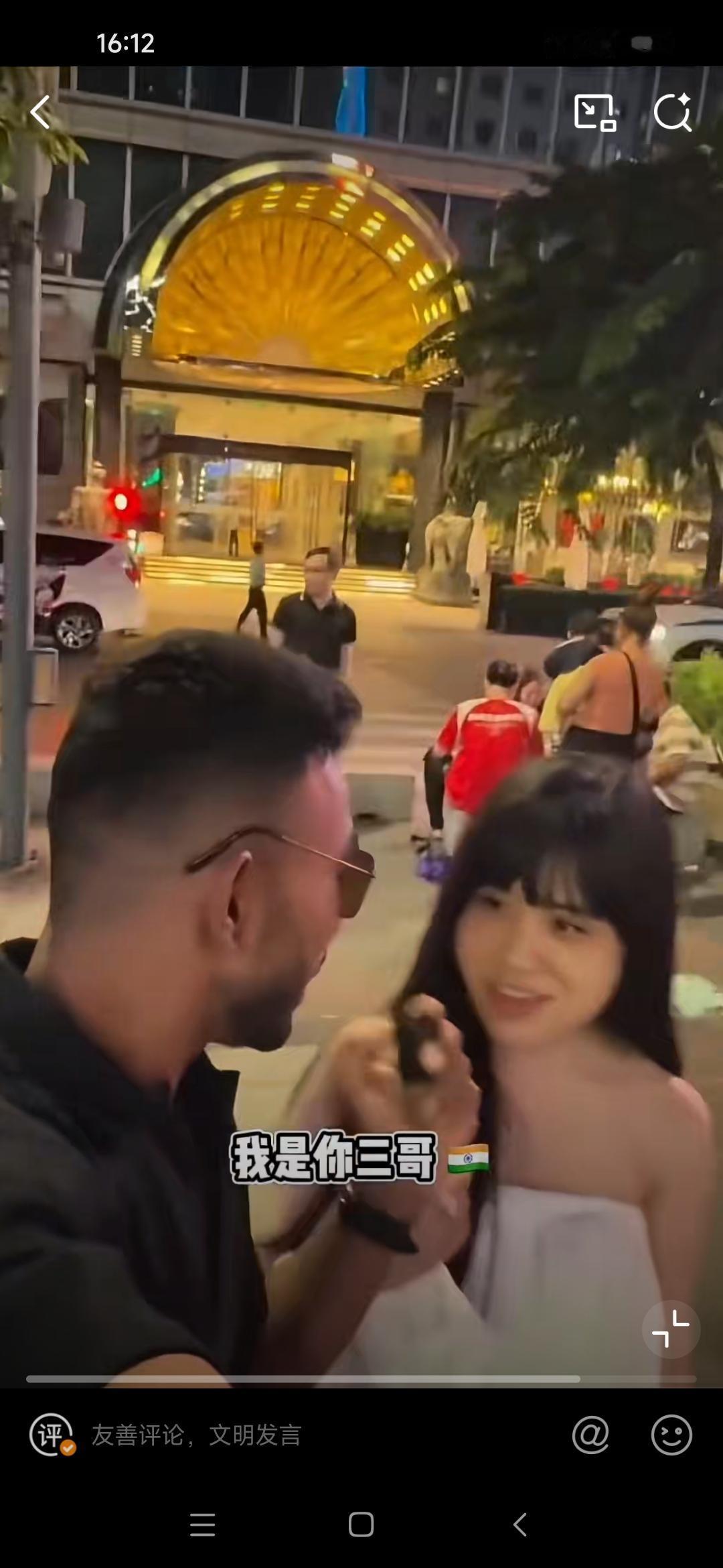 迷汁自信的阿三又又又在街头泡妞了。 结果当越南小姐姐得知他是印度人后,直接一个闪退加“拜拜”。 当小姐姐得知他是阿三时,一秒也不愿待,直接用手势打了个拜拜,快得我截屏都截了十几次才截到招手拜拜的那一帧。快得截屏图像模糊,而阿三站在那还扭头问:你去哪里? 果真是一个脸皮厚,不怕尴尬的人。 两个小姐姐都是闪退,一点面子也不给。伤害性不大,侮辱性极强。