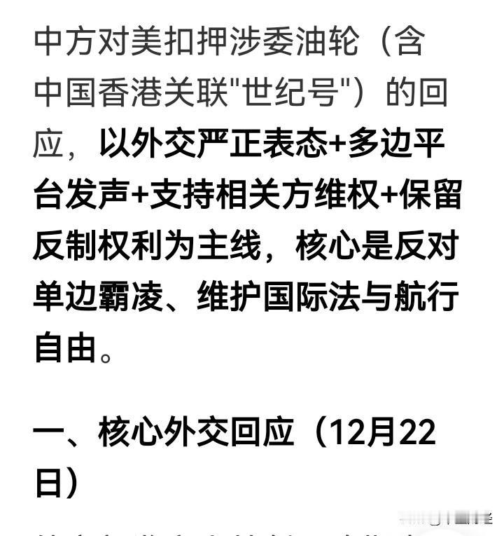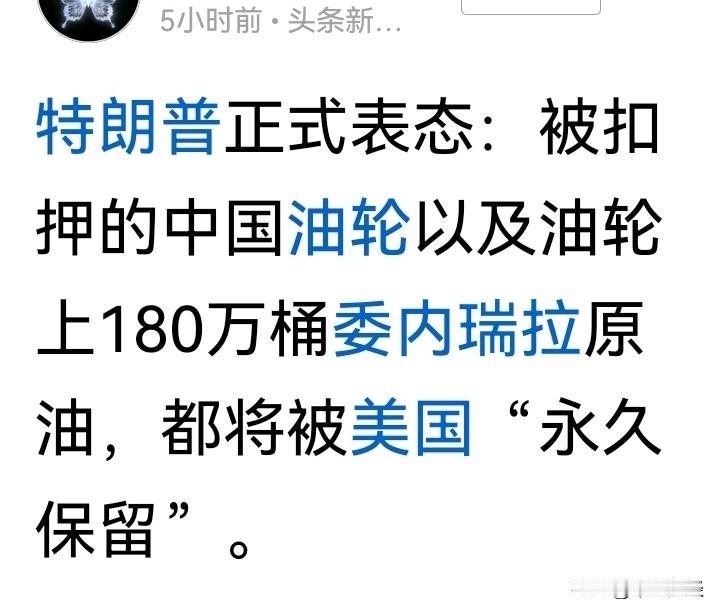 美国悍然扣押中国油轮,价值上亿的资产被公然抢夺!这无疑是霸权主义行径,是对中国权益的公然侵害。 说实话,反制行动已然开启。倘若美方拒不归还油轮并道歉,我国可依据《反外国制裁法》,对参与扣船的美方相关实体实施冻结在华资产、禁止交易等精准反制举措。不过,换个角度思考,中国是否可以考虑拦截扣留运送台湾武器的船舶呢?