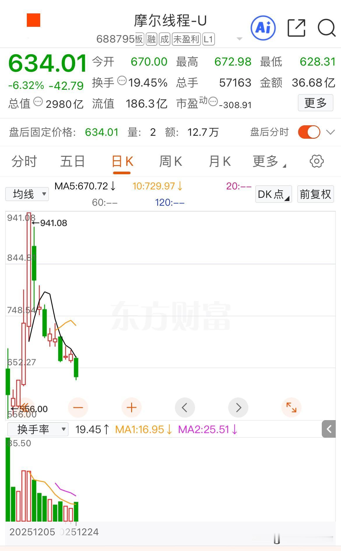 沐曦股份今天再次大跌7%,而这已经是沐曦股份连续第5天下跌,区间跌幅25%! 估计很多股民以为沐曦股份也会像摩尔线程那样上市后继续大涨,因此第一天就冲进去了,但是结果应该是损失惨重吧! 此前摩尔线程上市后仅调整一天就连续大涨4天,区间大涨近60%!而沐曦股份紧随其后上市,很多股民以为有套利机会,于是纷纷在第一天买入,可惜买入后连跌5天,与摩尔的表现大相径庭! 但其实这就是主力的套路深,你以为它要这样,但它偏偏就要那样,所以要想赚钱还得多个心眼儿!